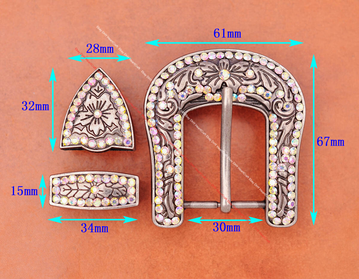 Colorful Crystal Rhinestone Western Cowboy Rodeo Belt Buckle Set Fit 30MM Strap