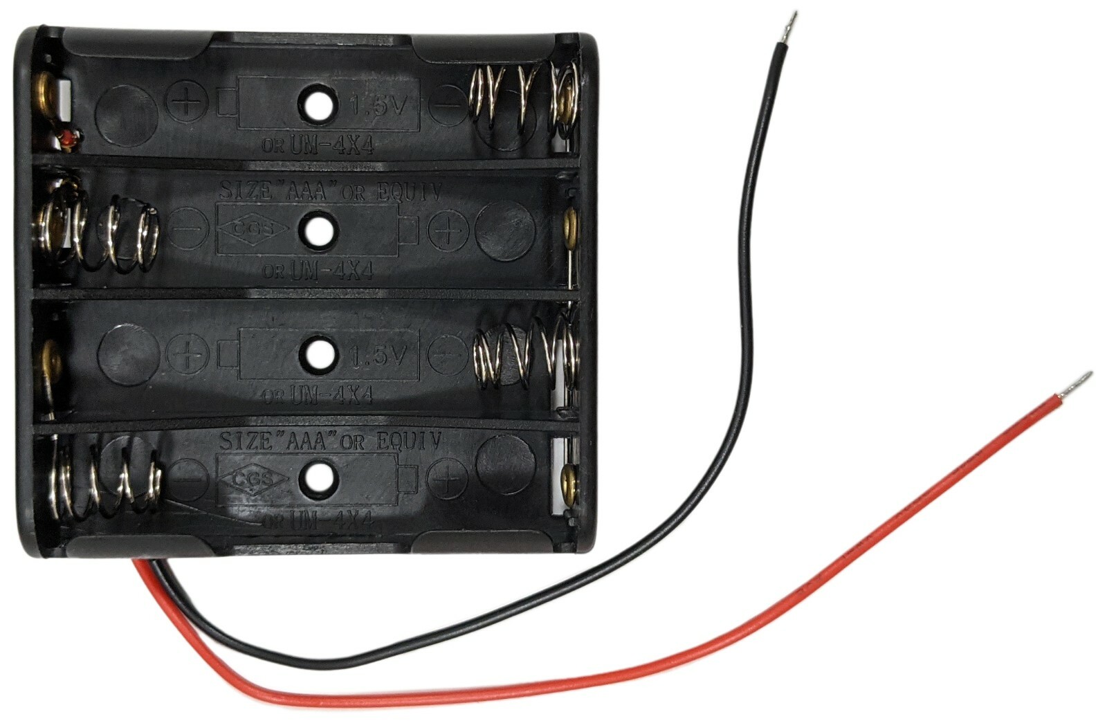 AAA 4 Battery Holder with Wire Leads, Holds Four AAA Batteries