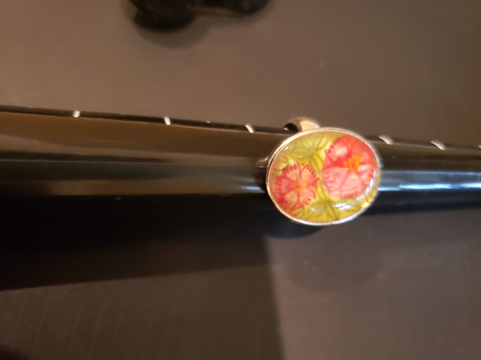 как выглядит Sterling Silver 925 Ring Hand Painted Green Pink Yellow Flowers Sz 7.25in фото