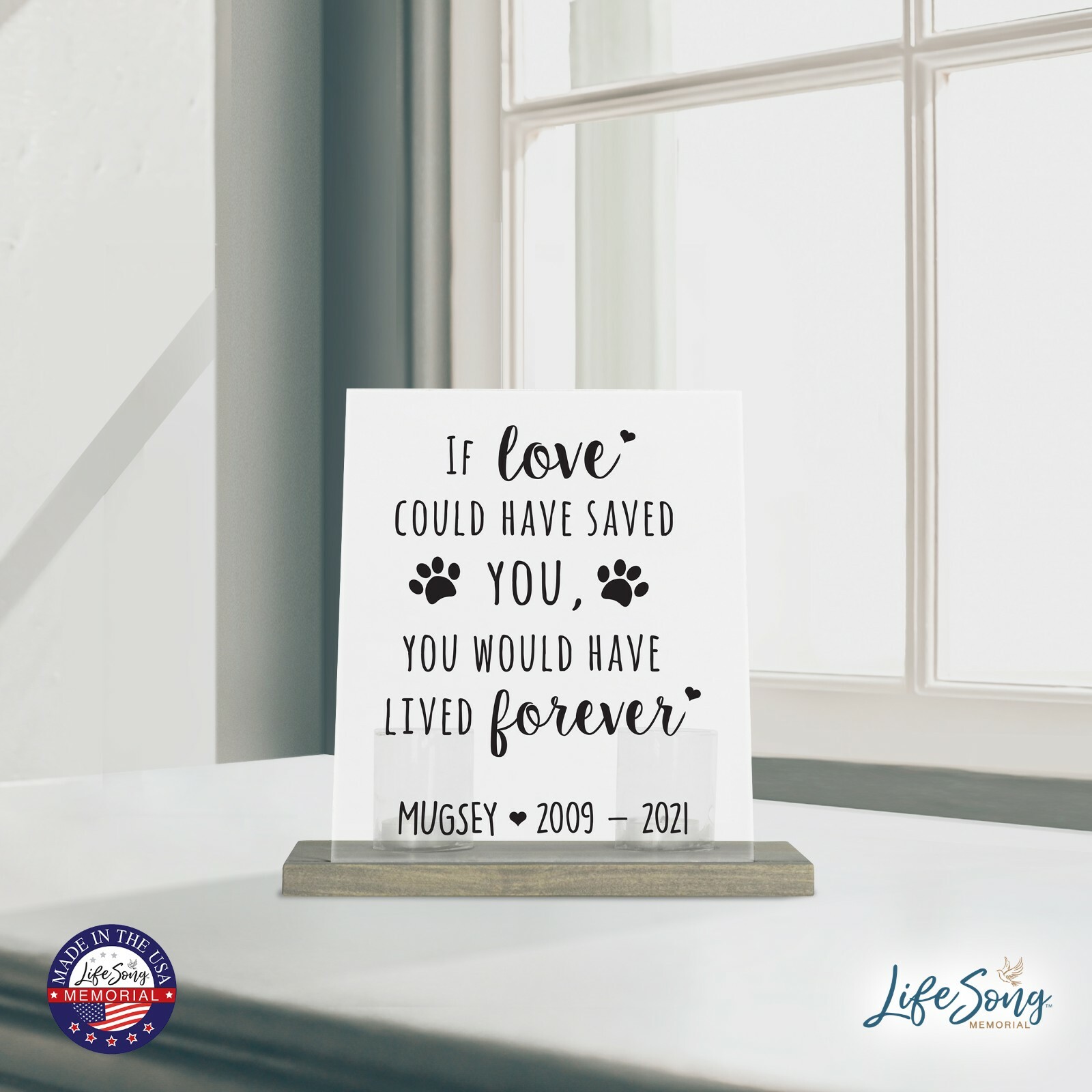Custom Pet Memorial Acrylic Signs w/ Wood Base Candle Holder - If Love Could