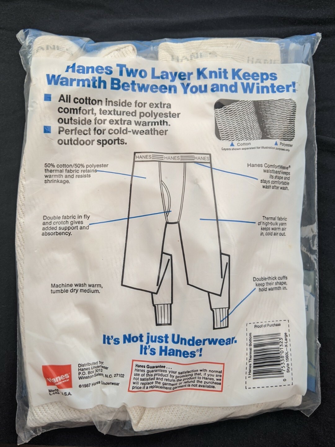 VINTAGE 1987 NEW HANES American Sportsman THERMAL Bottoms Size XL 42-44