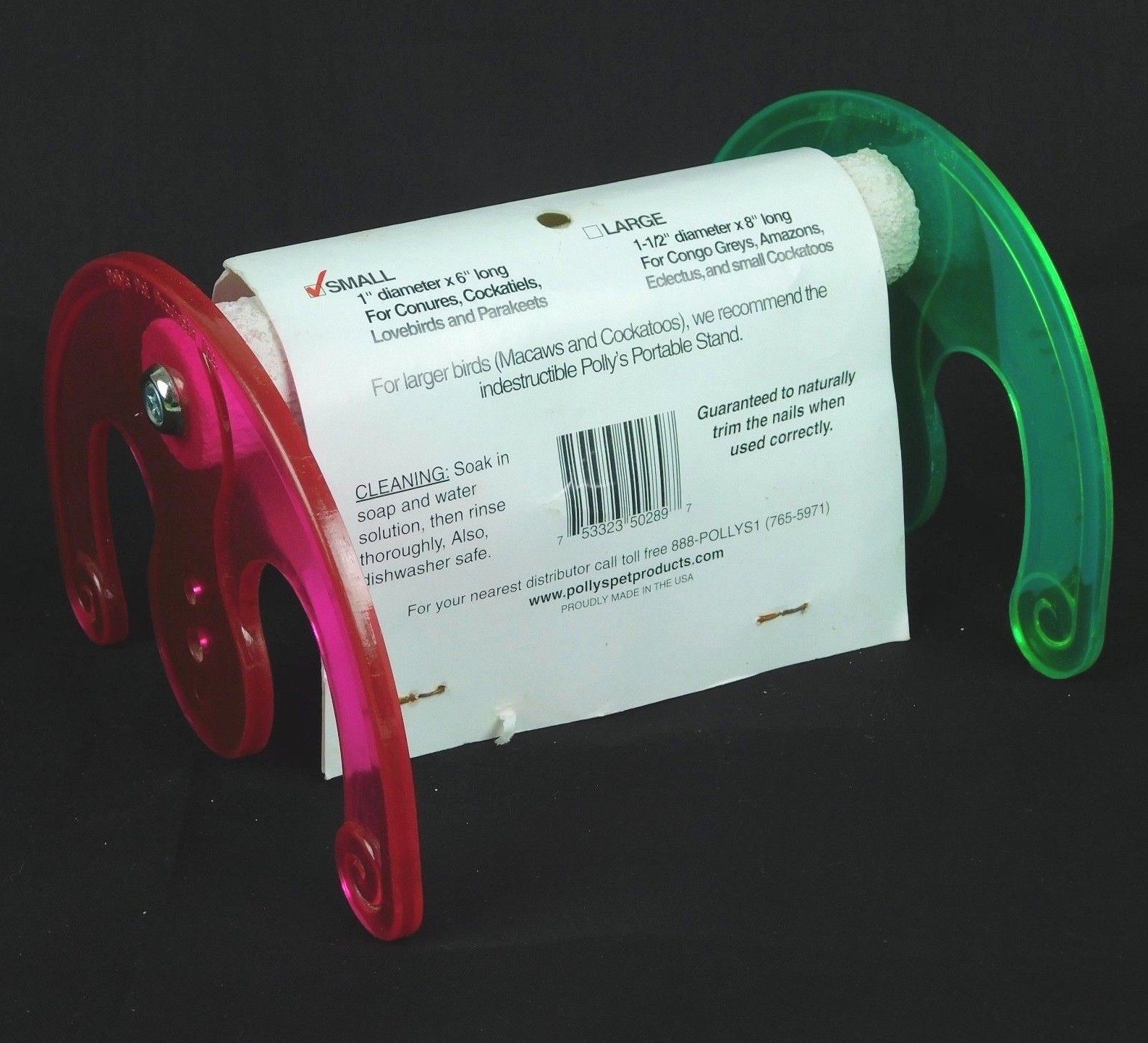 Polly's Portable Small Parrot Stand Rocker 1x6 Long Nail Trim Perch Red Green