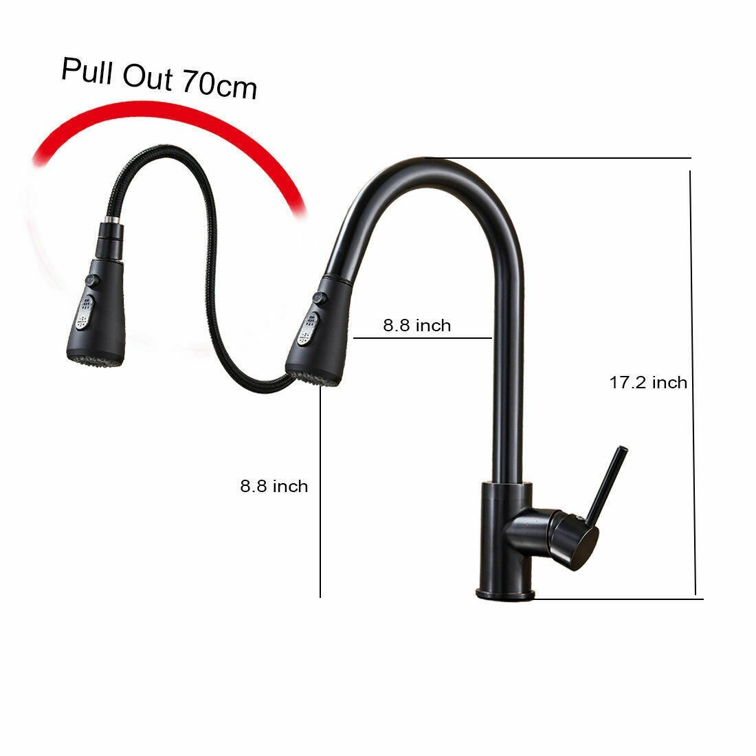 Black Kitchen Sink Faucet Pull Down Sprayer Mixer Tap with Cover Soap Dispenser