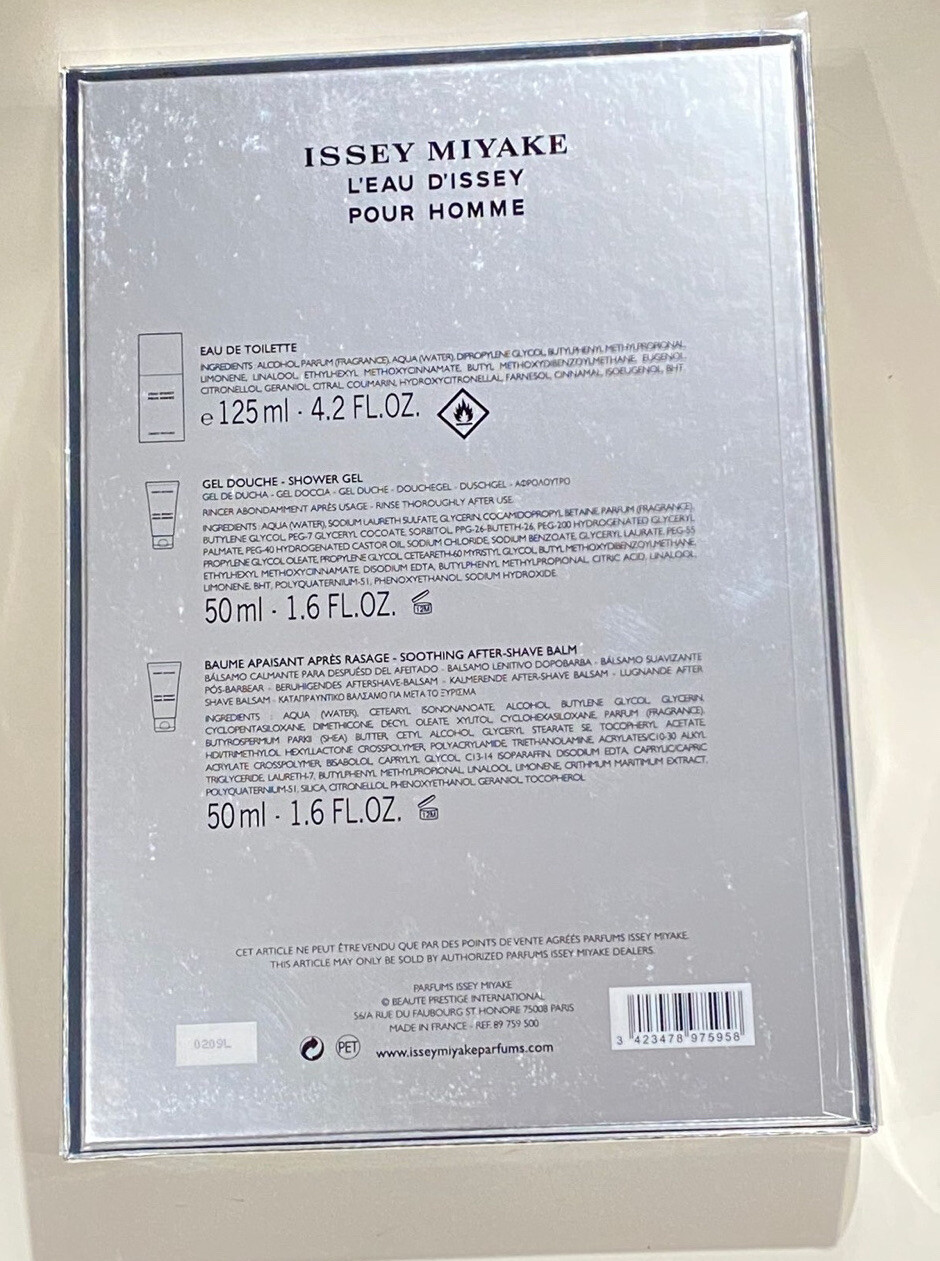 как выглядит Issey Miyake Men 3pc Gift Set With 4.2oz Edt 1.6 S/G 1.6A/S/B New фото