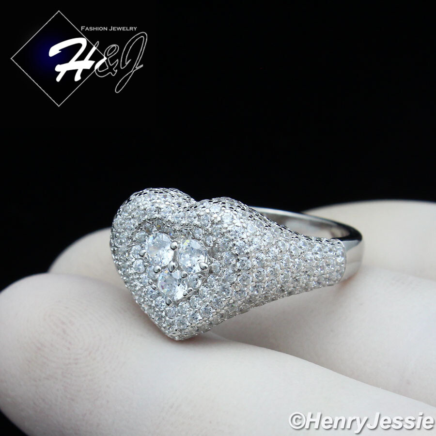 WOMEN 925 STERLING SILVER BLING CUBIC ZIRCONIA HEART SHAPE ENGAGEMENT RING SR170