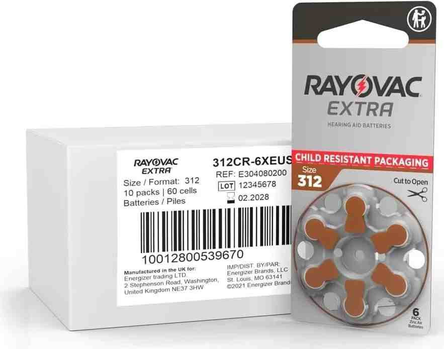 60 x Size 312 Rayovac Extra Advanced Hearing Aid Batteries - 10pk 60pc