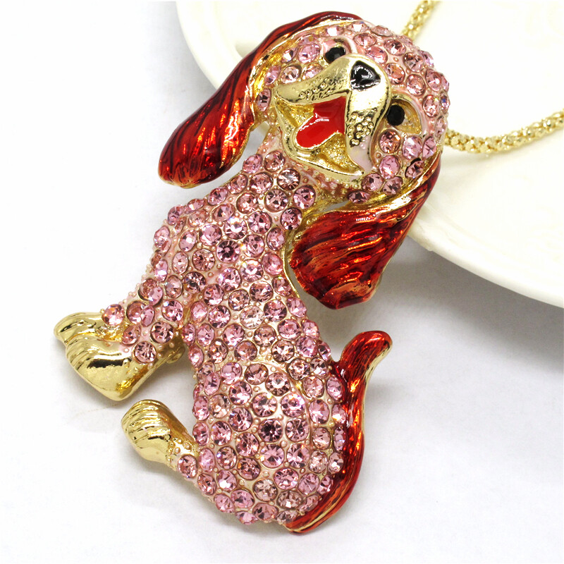 Fashion Women Cute Bling Pink Dog Puppy Crystal Pendant China Necklace
