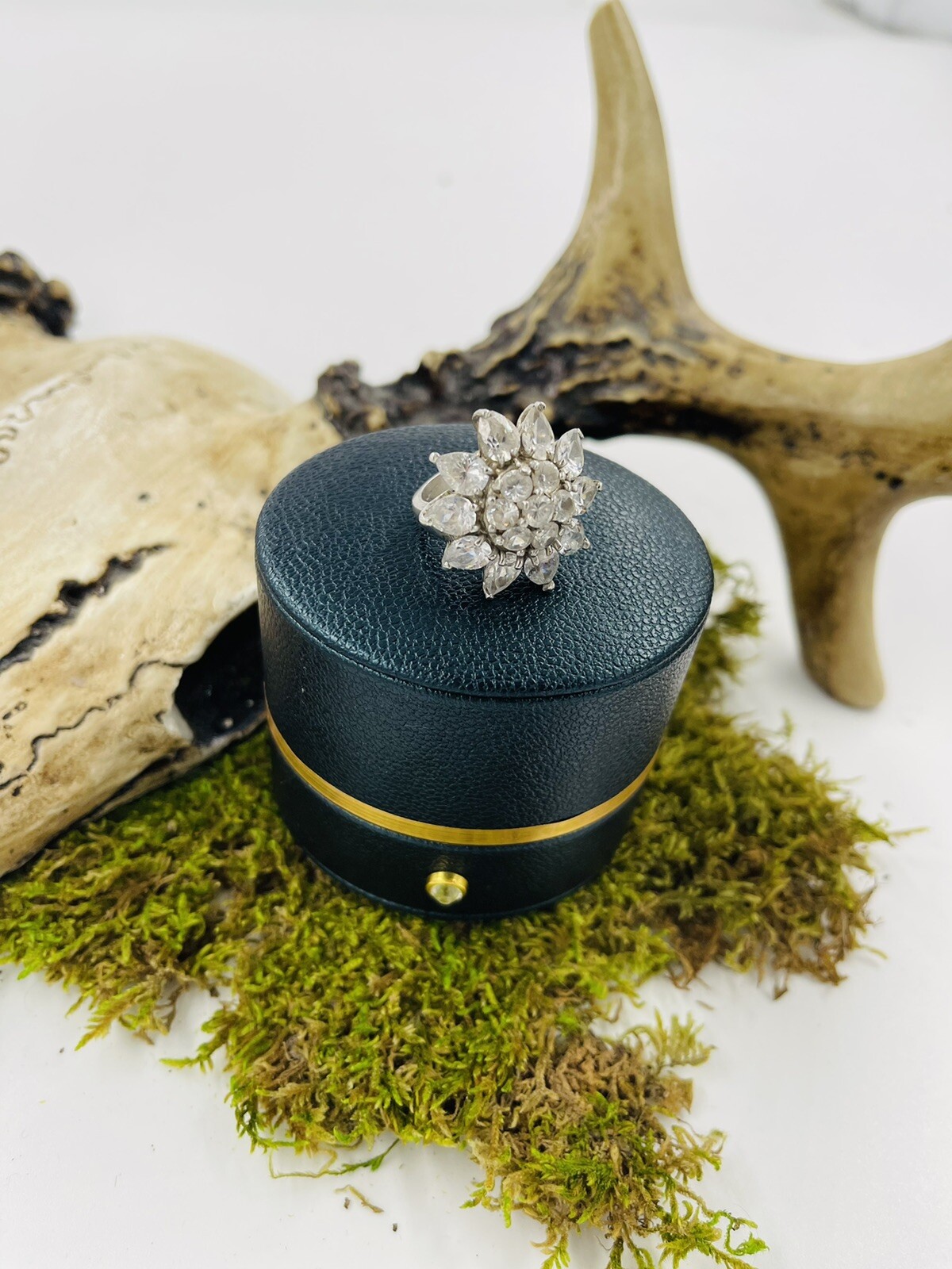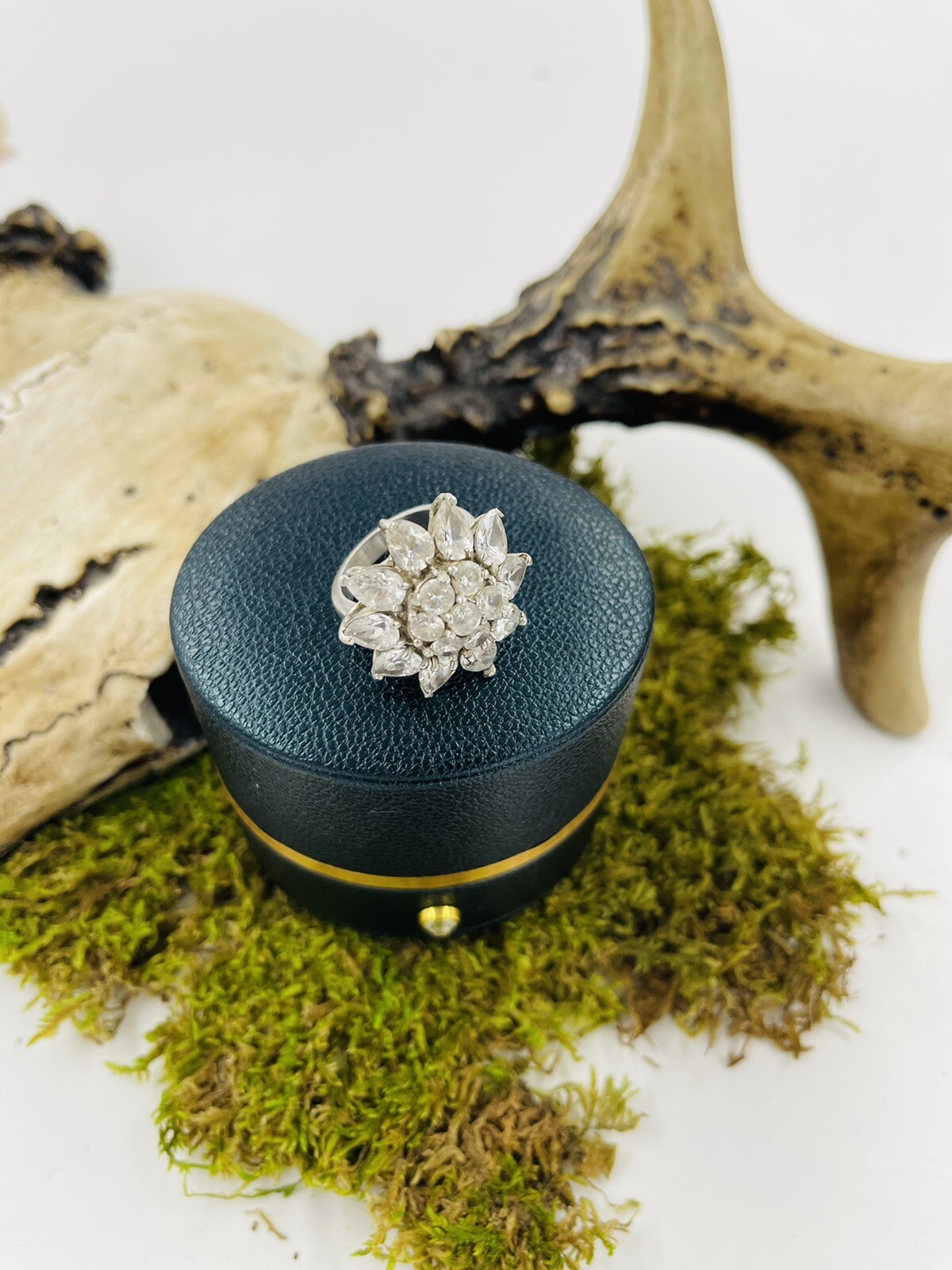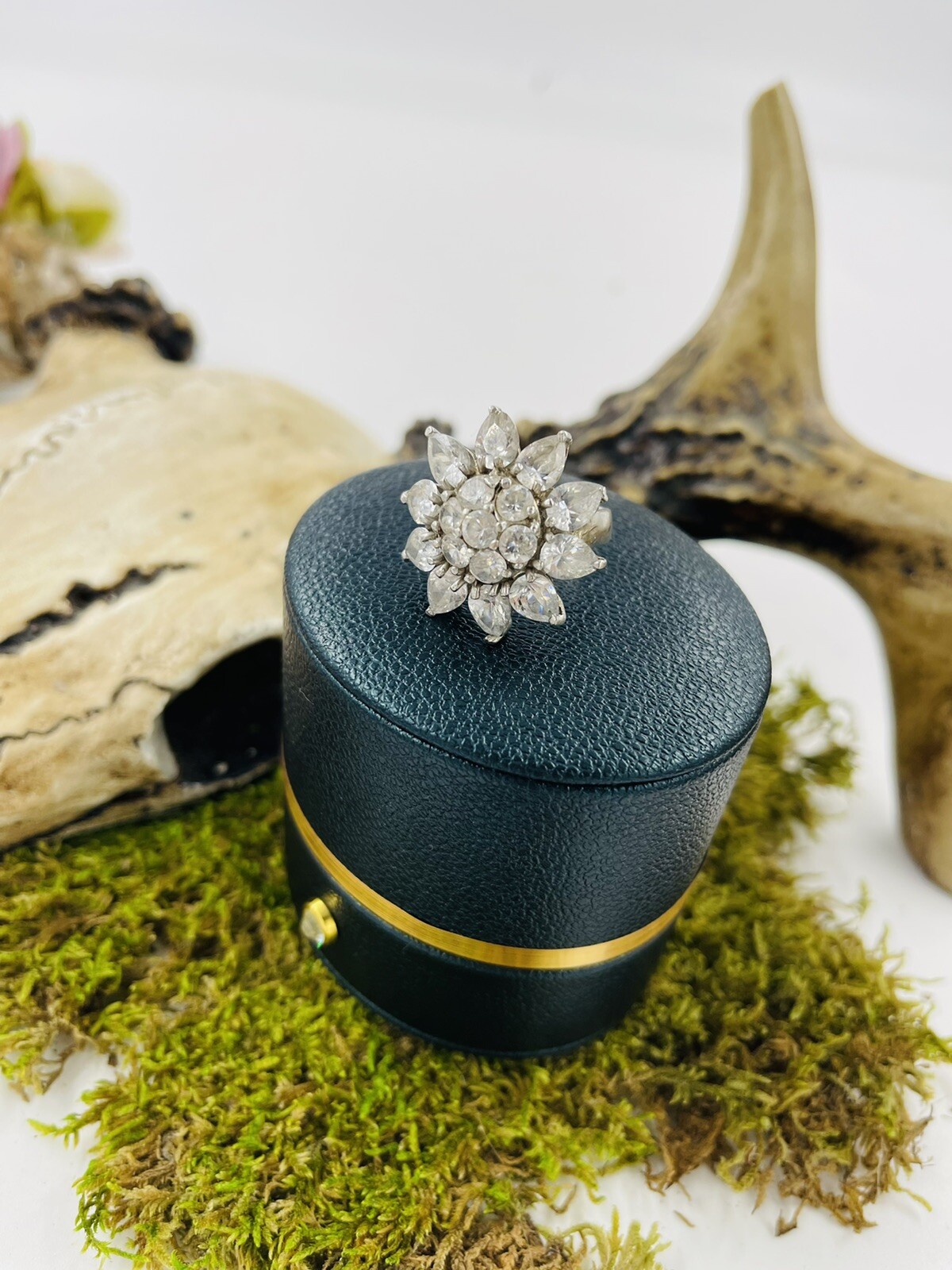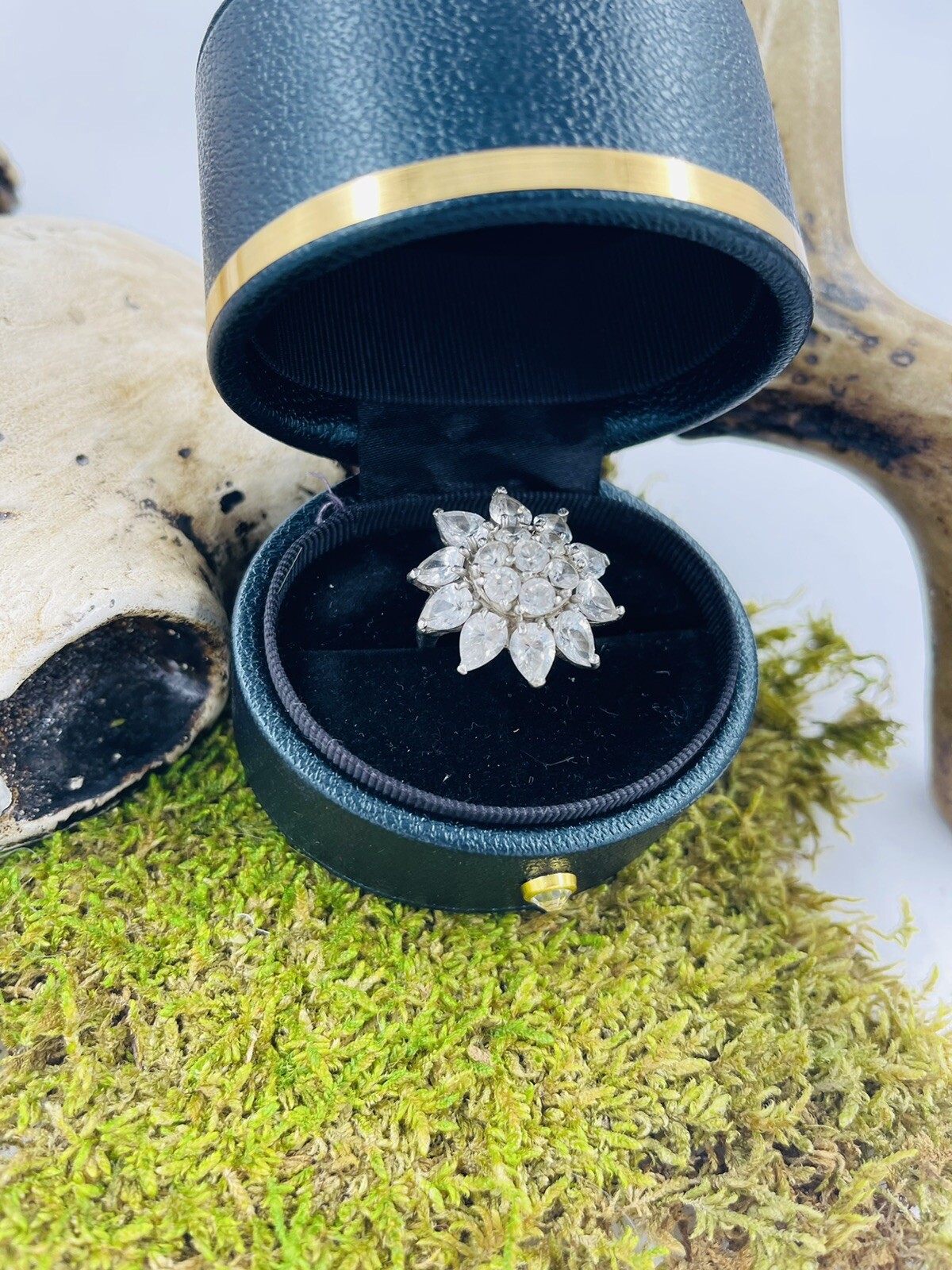 Gorgeous Unique Sterling Silver Vintage Large Crystal Sunflower Ring