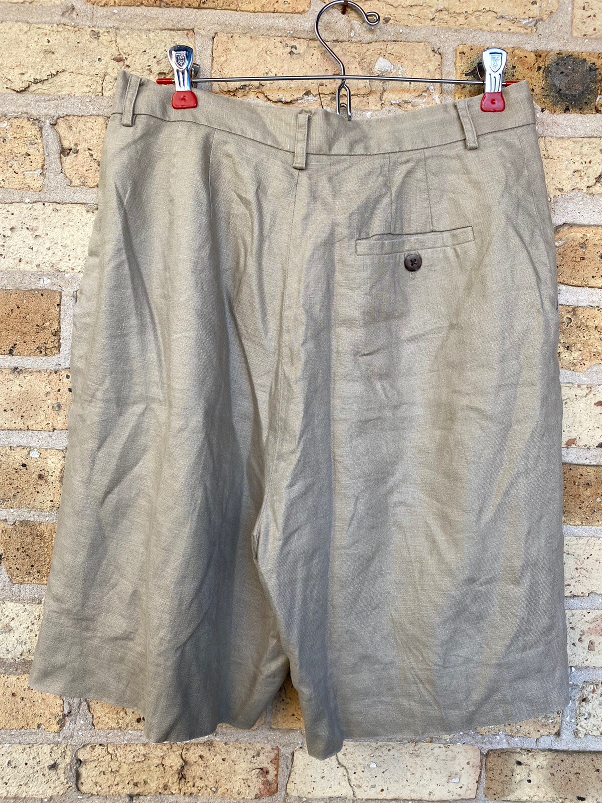 как выглядит Linen High Waist Bermuda Shorts Size 12 Classiques Entier Khaki Tan Lined 1990 s фото