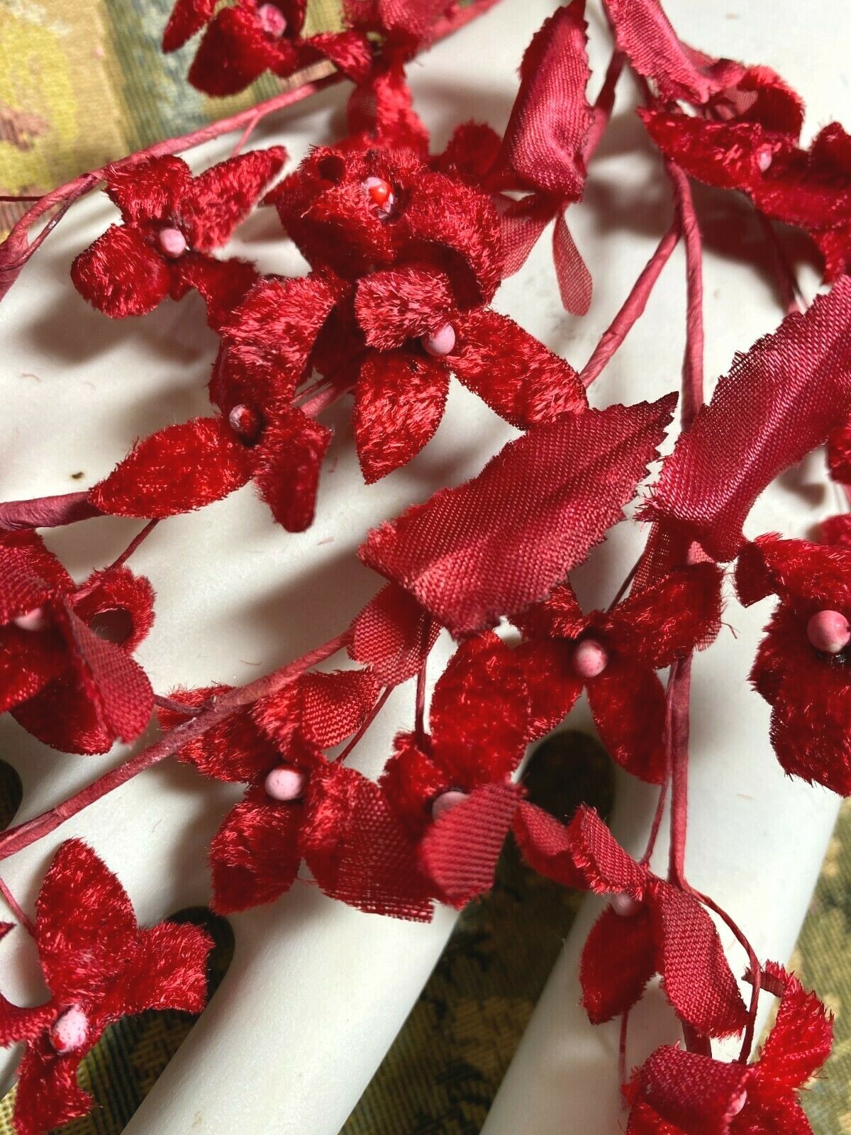 как выглядит vintage velvet silk 1940s millinery flowers 1 spray made Japan xmas true red фото