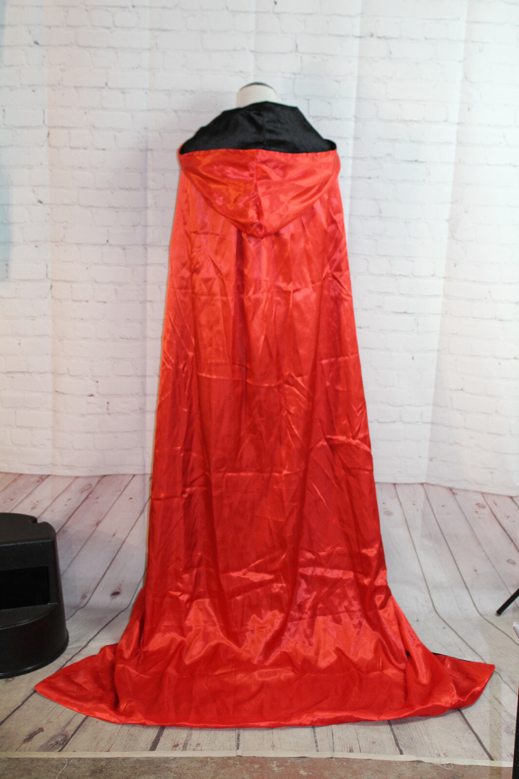 NEW Unisex Reversible Hooded Cloak Cape Black Red Costume Sz 5XL