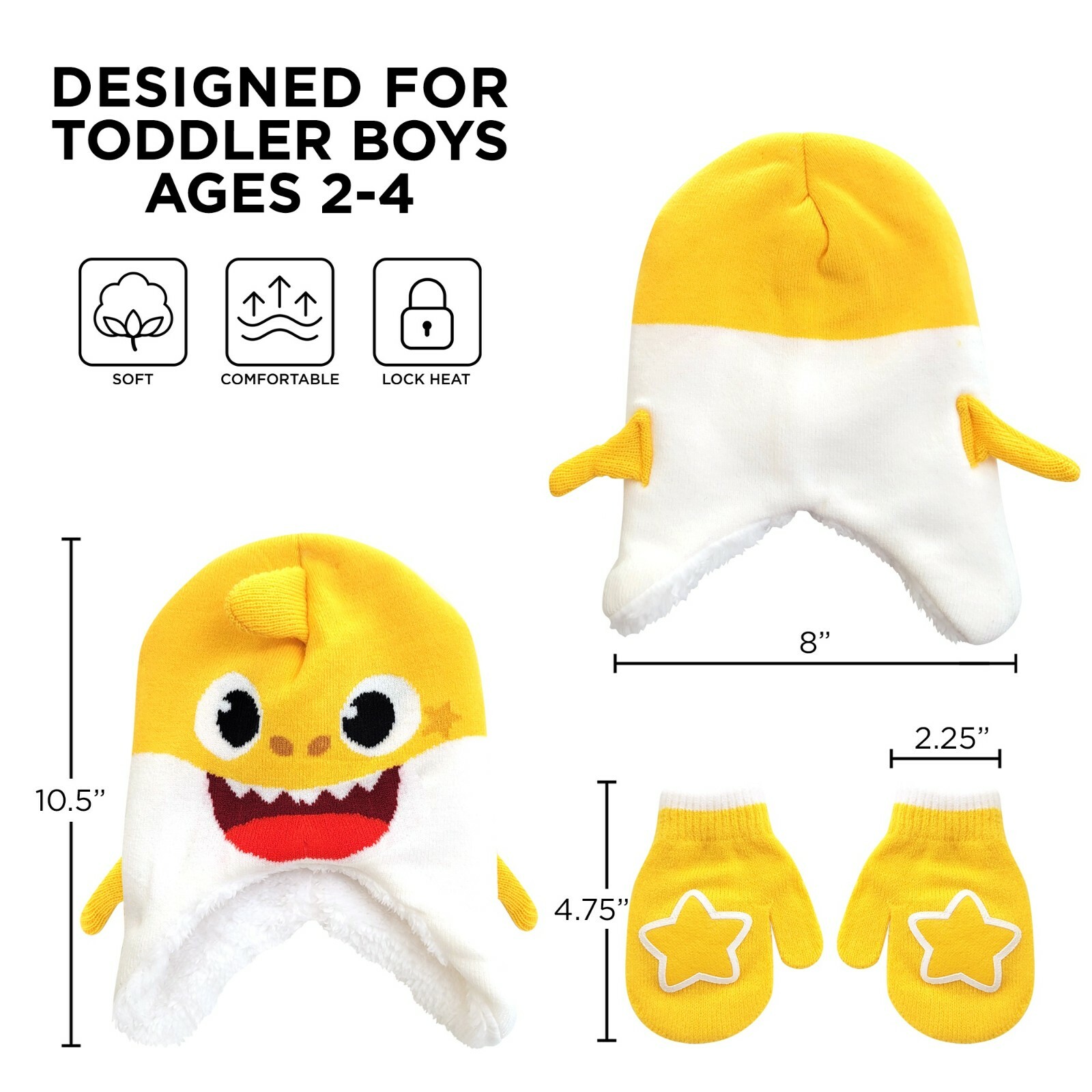 как выглядит Nickelodeon Toddler Winter Hat and Kids Mitten Set, Baby Shark Beanie Age 2-4 фото