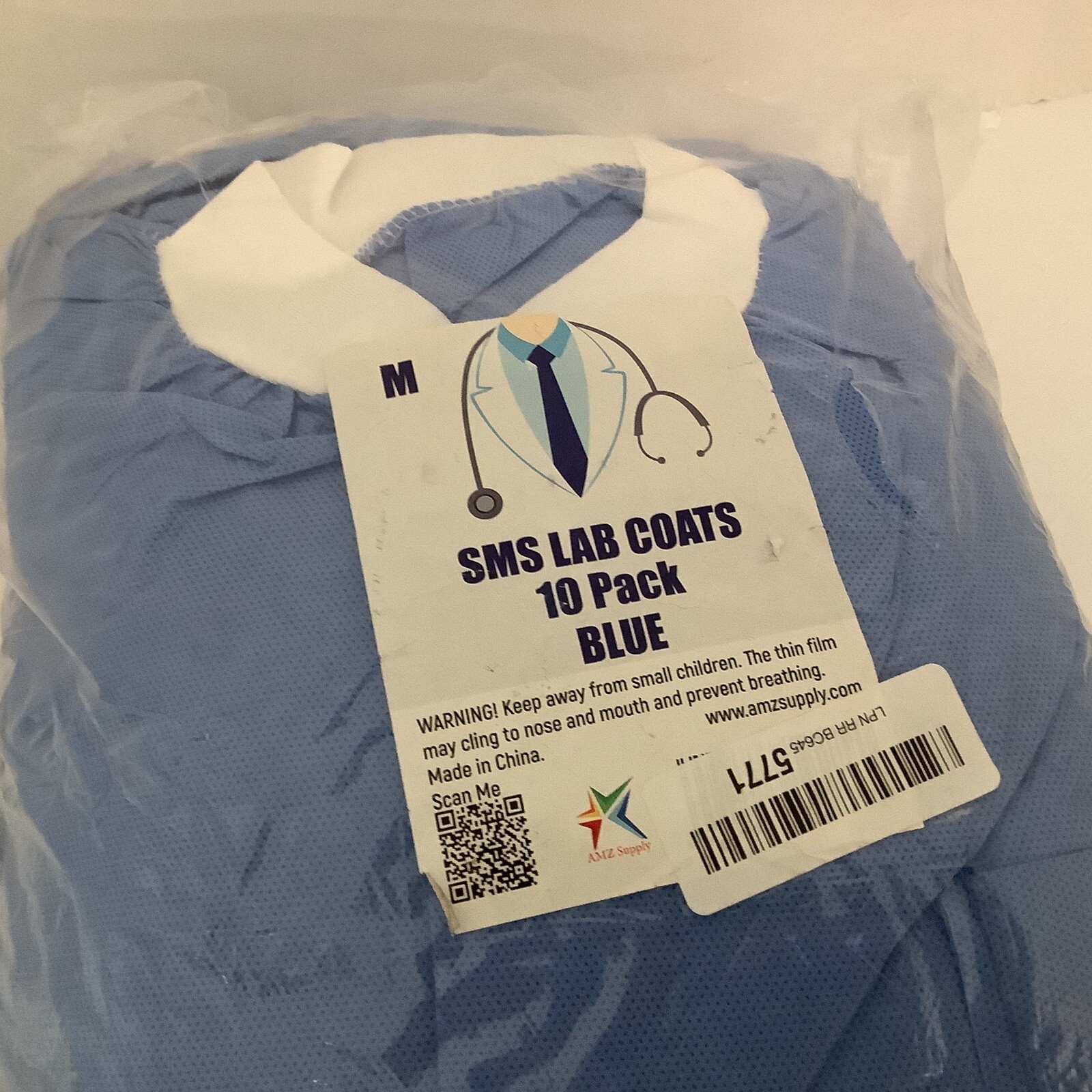 10ct Blue Disposable Polypropylene Frocks 45 gsm Medium /w 6 Snaps