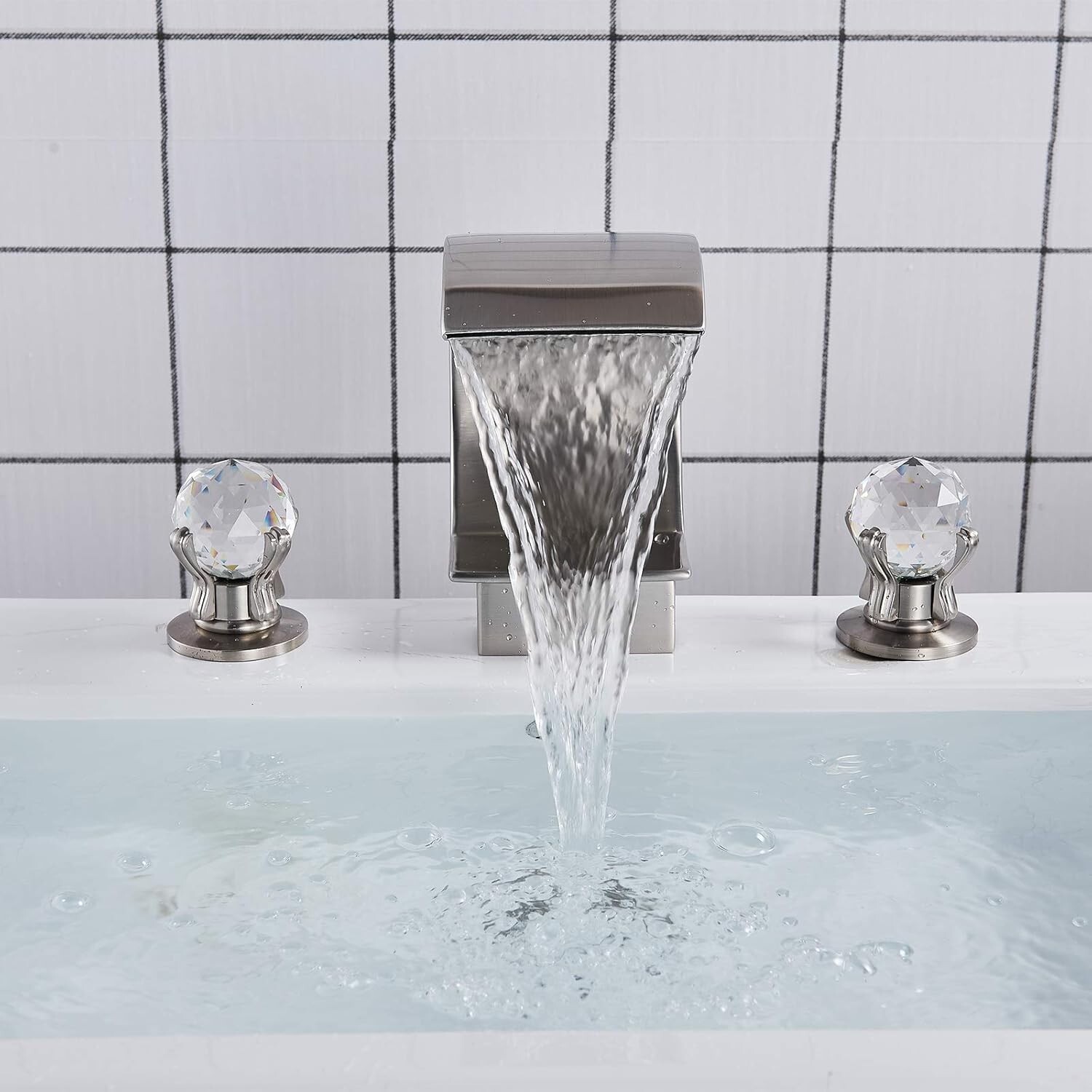 как выглядит Luxury 8"Widespread Bathroom Sink Faucet Basin 3 Hole Waterfall Vanity Mixer Tap фото