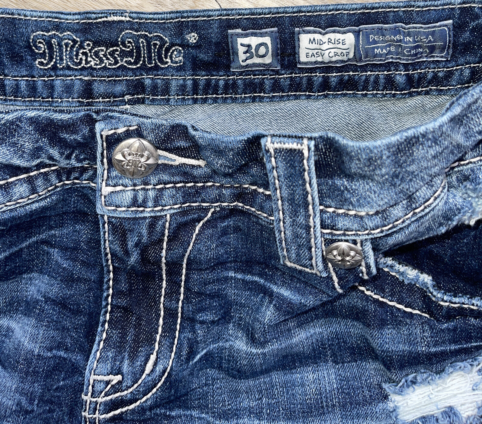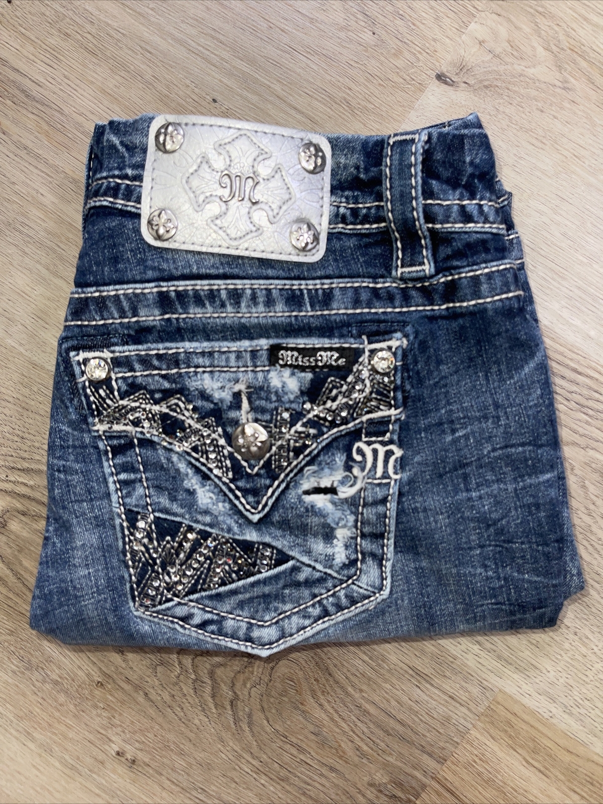 как выглядит miss me mid rise easy crop embellished Women Size 30 Silver Tag Distressed фото