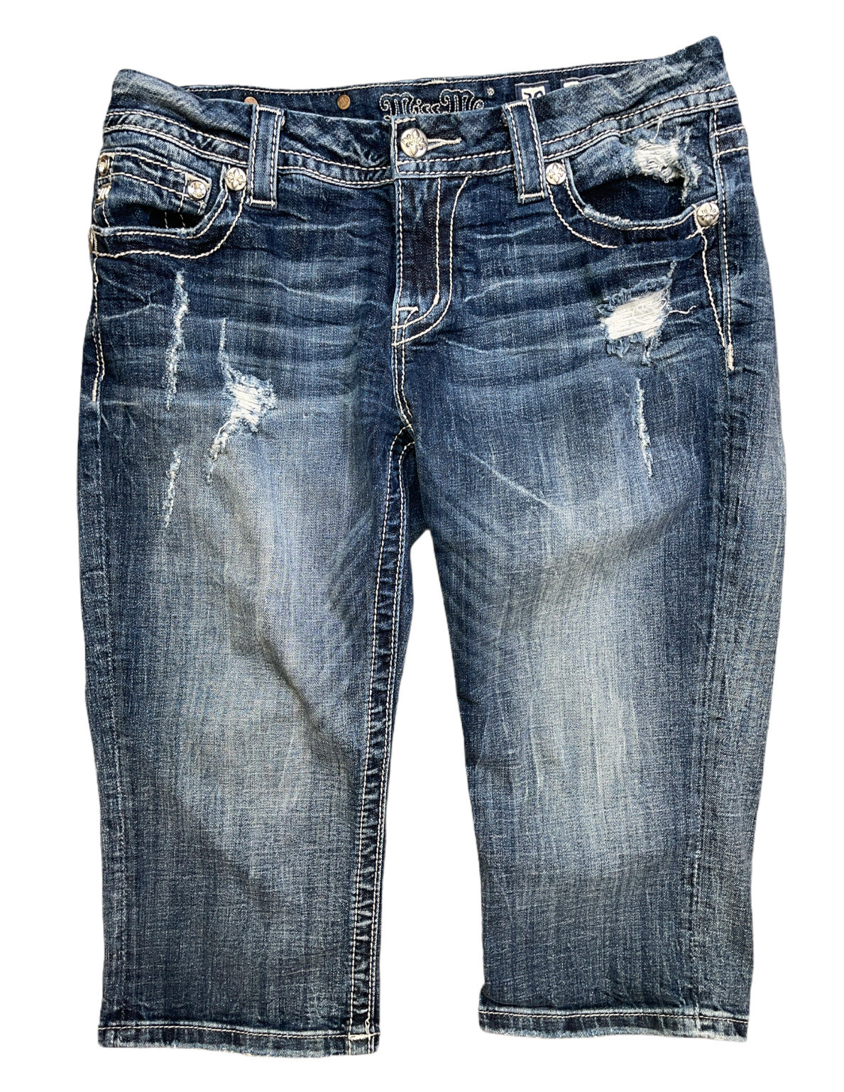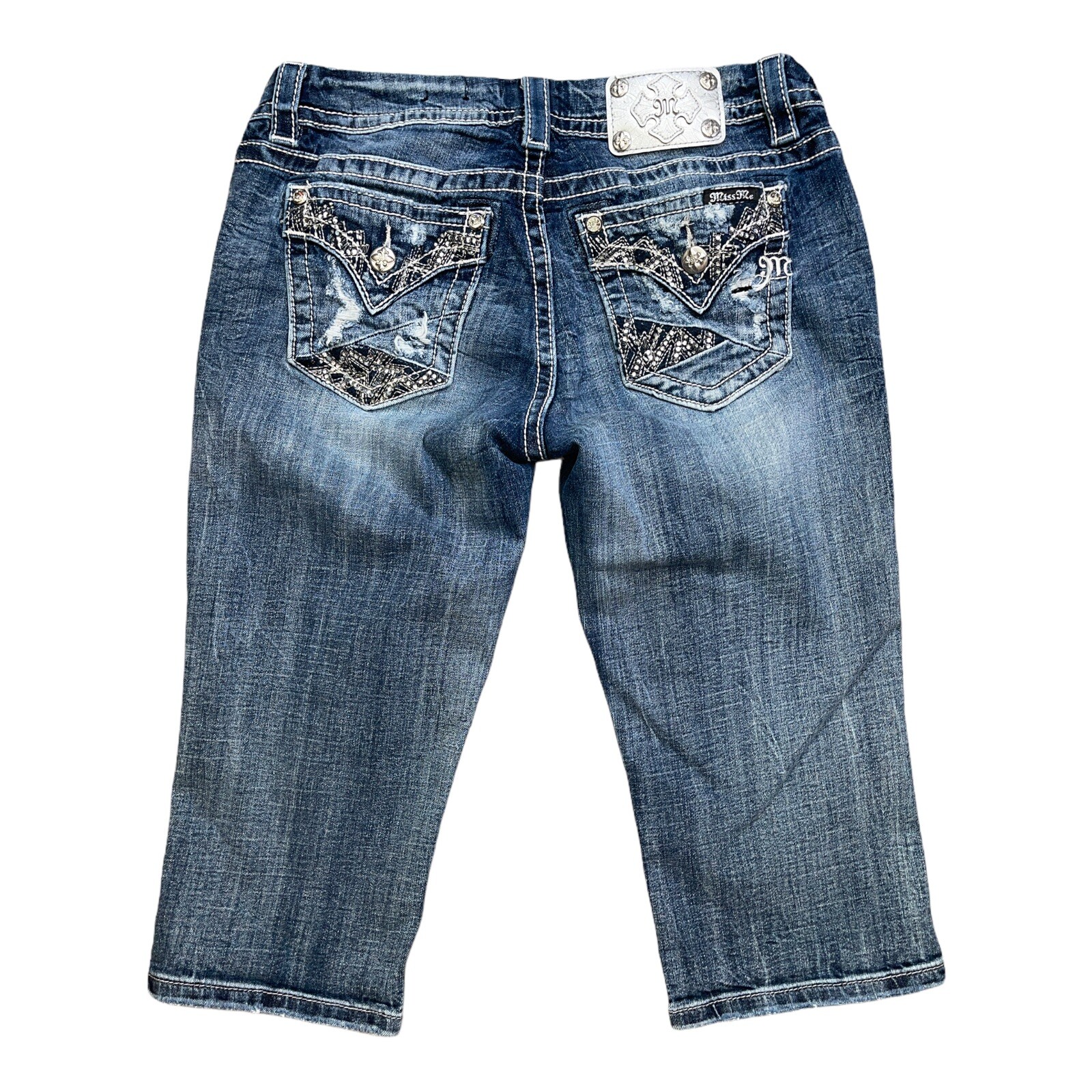 miss me mid rise easy crop embellished Women Size 30 Silver Tag Distressed
