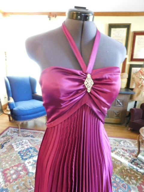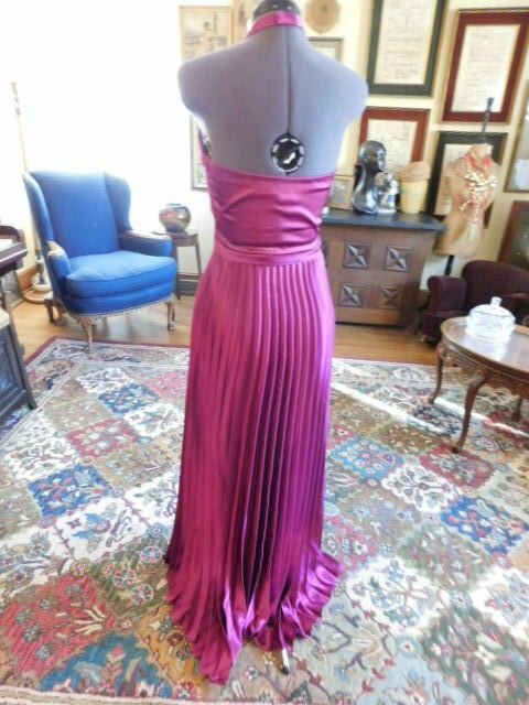 STUNNING PERMANENT PLEATED CHARMEUSE CAMILLE LE VIE FUCHSIA FORMAL GOWN SZ 6