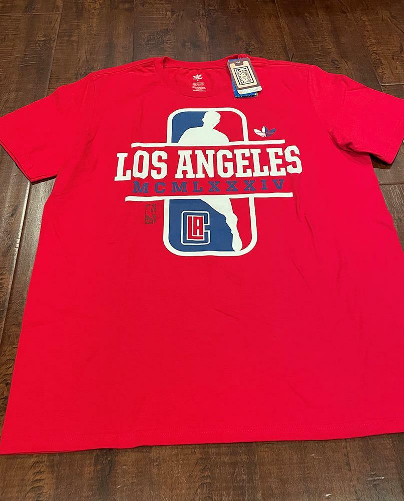 New Men Adidas Crew Neck T-shirt Tee Top Short Sleeve Red NBA Los Angeles Large