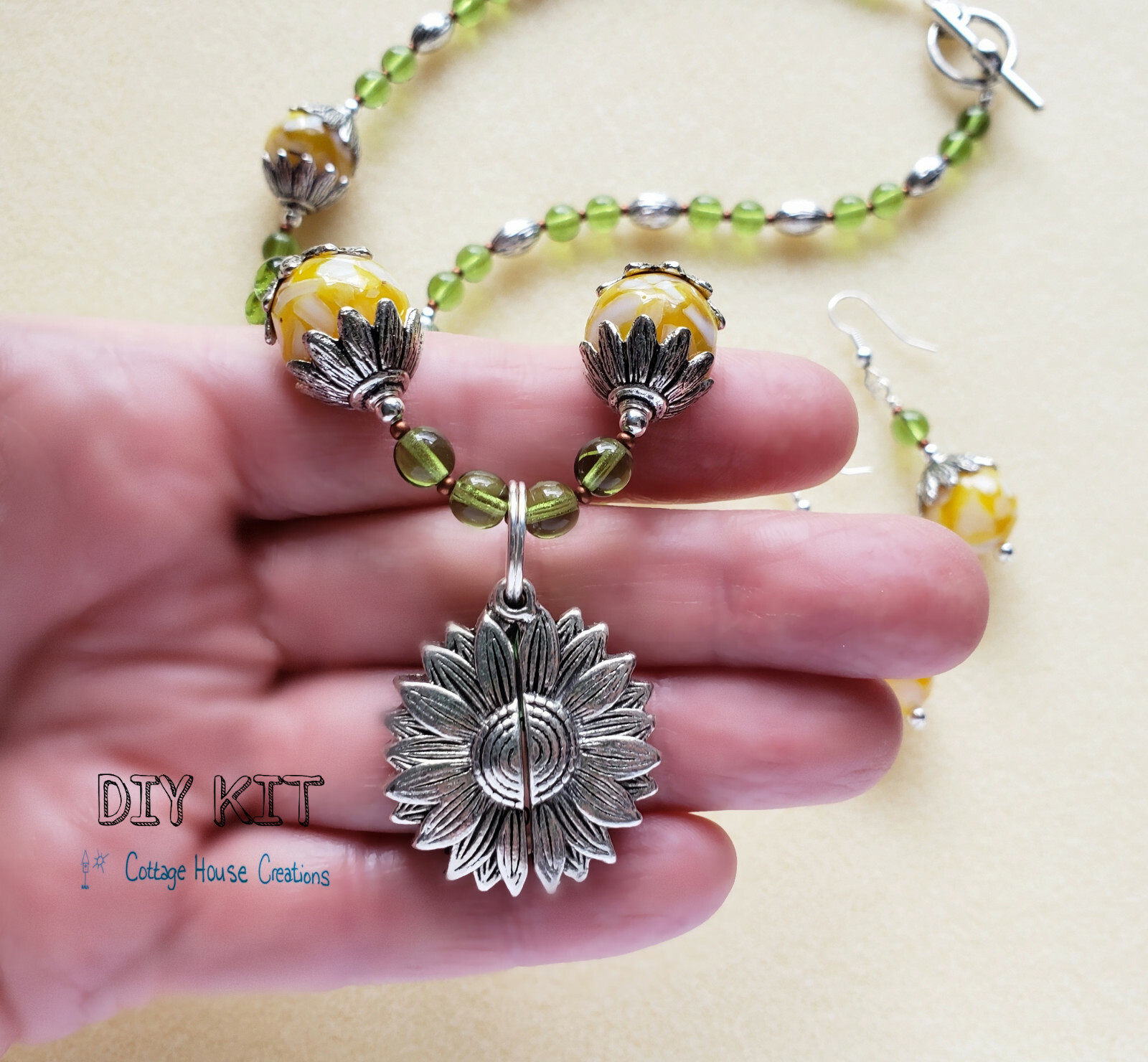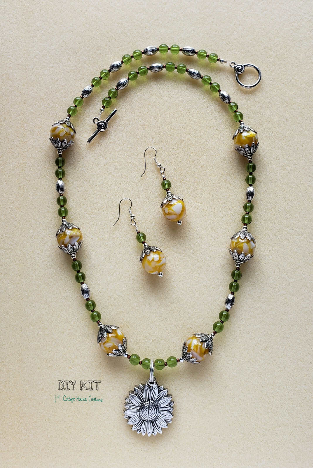 DIY KIT I Love You Mom Sunflower Necklace Adult Jewelry Making Bead Kit