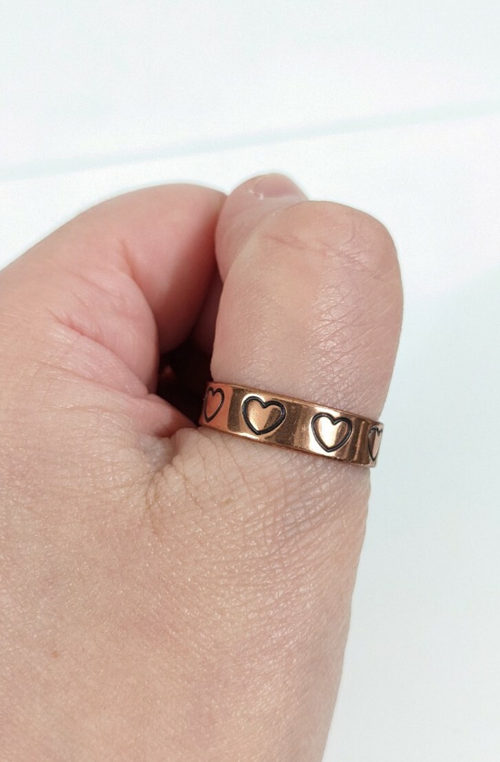 как выглядит Size 11 1/2 Heart Stamped 1990s Solid Copper Band Thumb Ring grunge фото