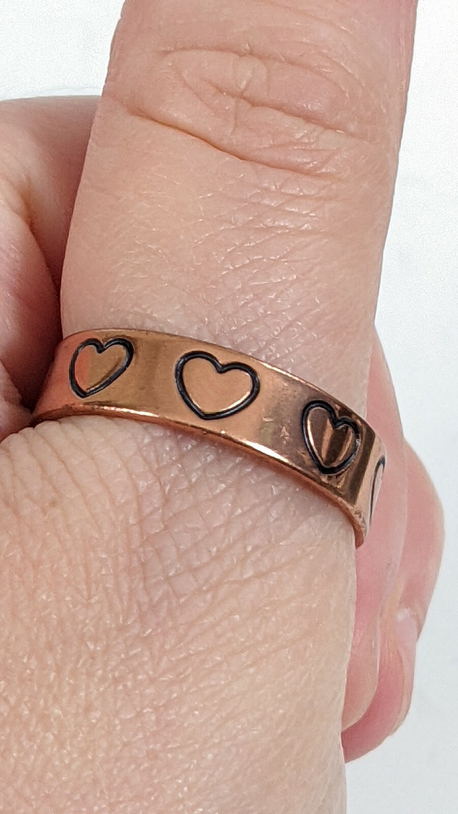 Size 11 1/2 Heart Stamped 1990s Solid Copper Band Thumb Ring grunge