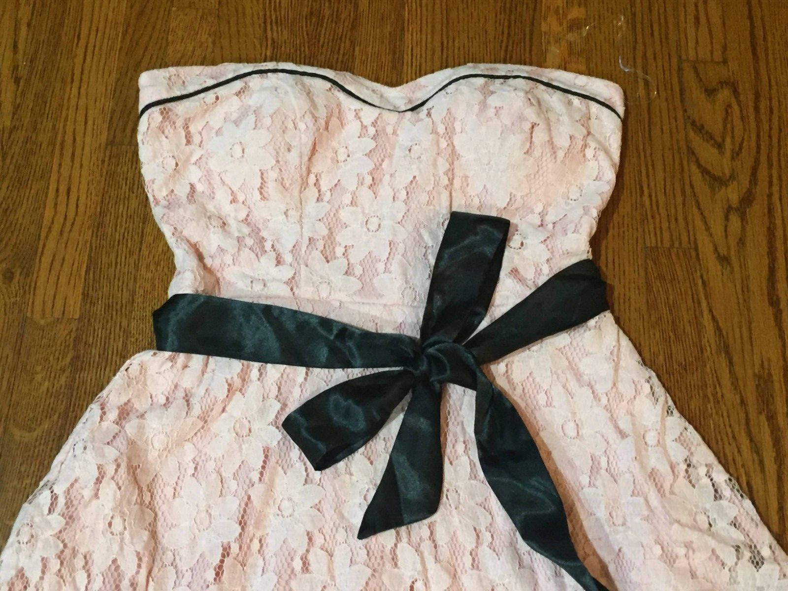 как выглядит NWT Speechless womens blush peach strapless party dress 7 lace light padding фото