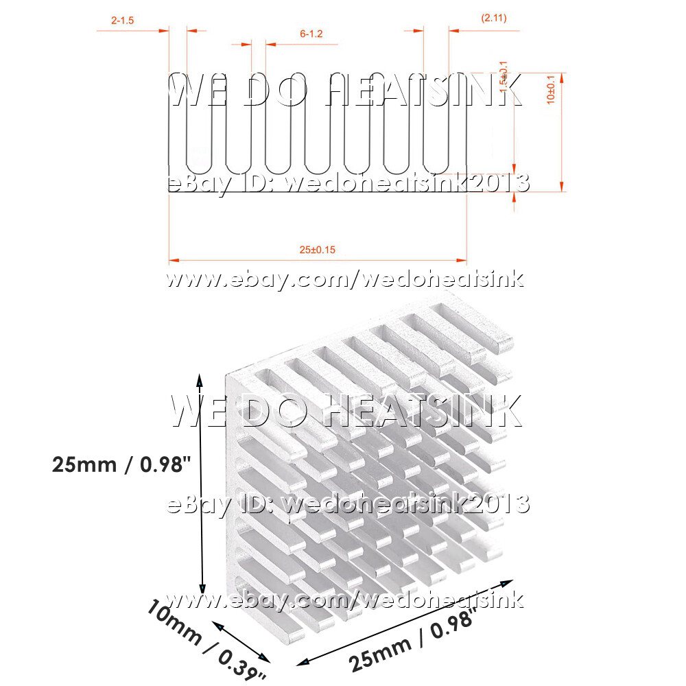 25x25x10mm Silver Slotted Heatsink Radiator Cooler With Thermal Pad for CPU IC