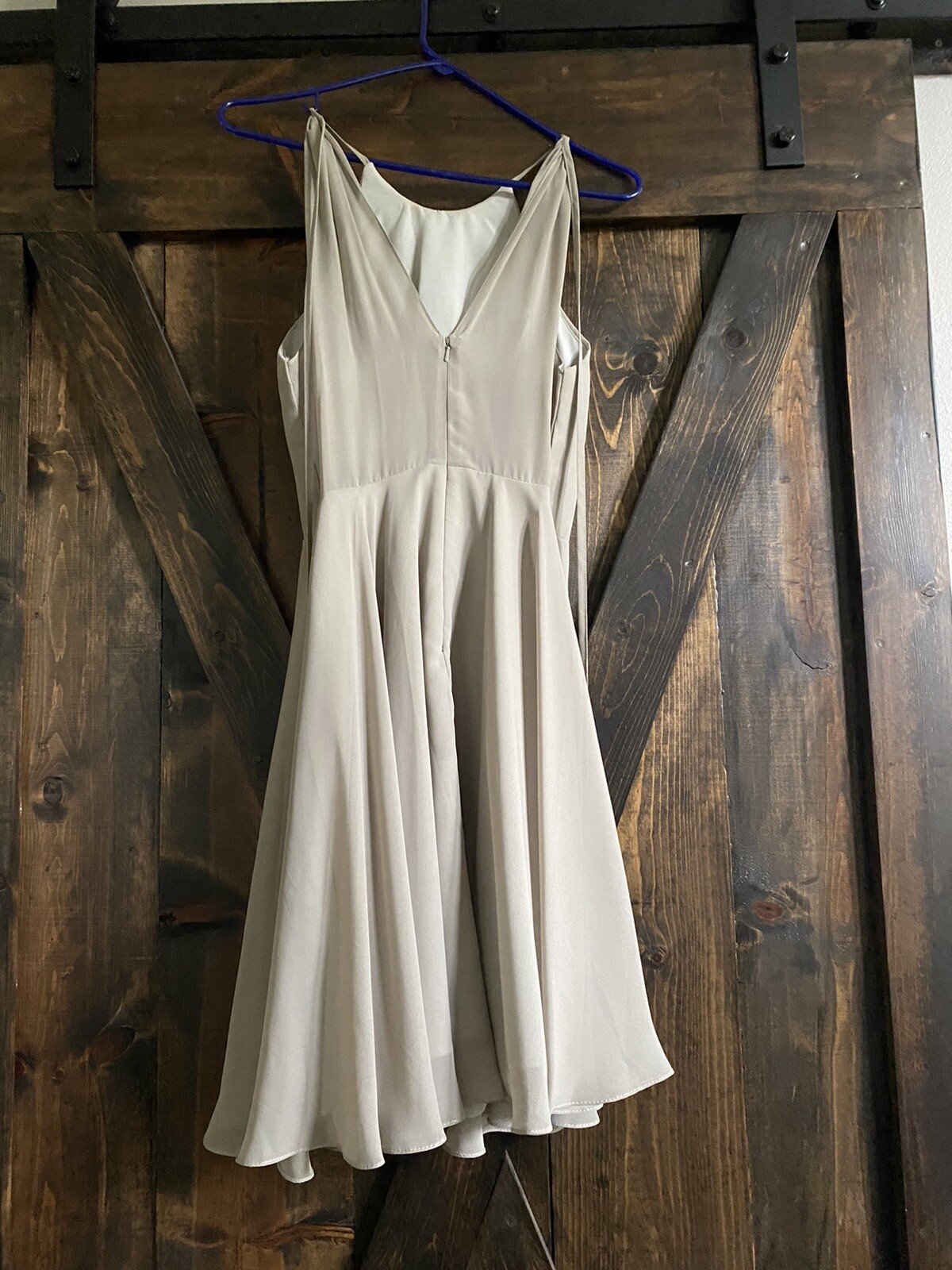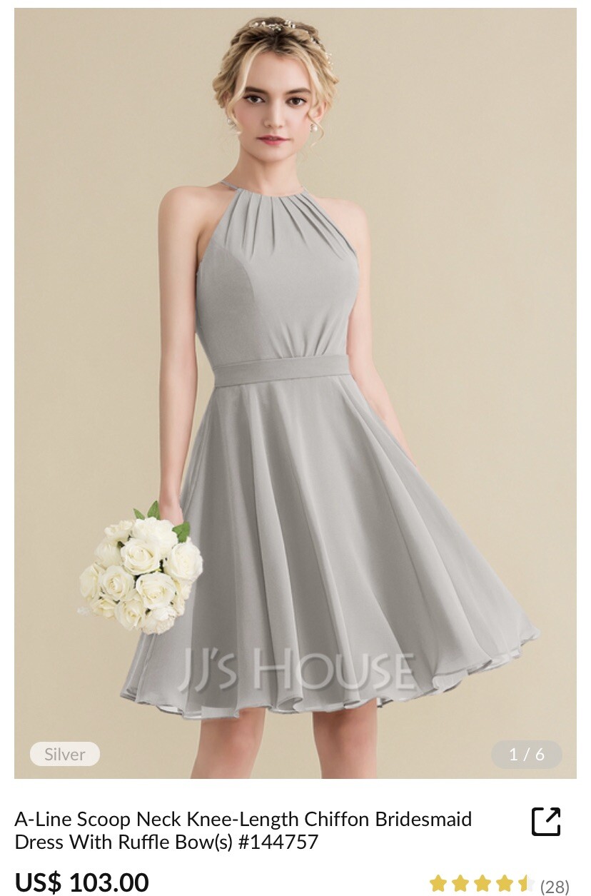 как выглядит JJ s house A-Line Scoop Neck Knee-Length Chiffon Bridesmaid Dress Size 4 Silver фото