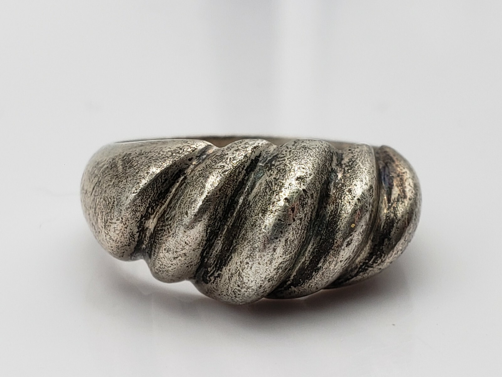 Vintage Oxidized Sterling 925 Grooves Wave Scallop Modernist Cocktail Band Ring