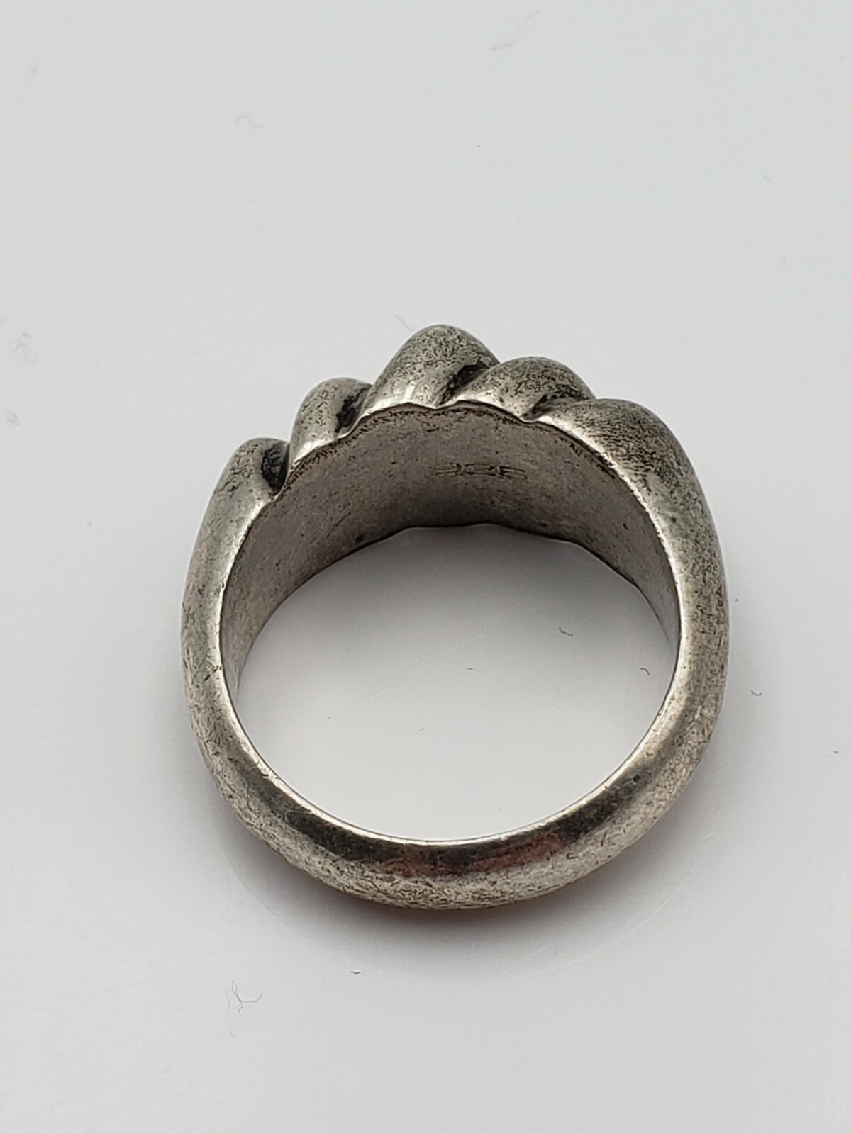 как выглядит Vintage Oxidized Sterling 925 Grooves Wave Scallop Modernist Cocktail Band Ring фото