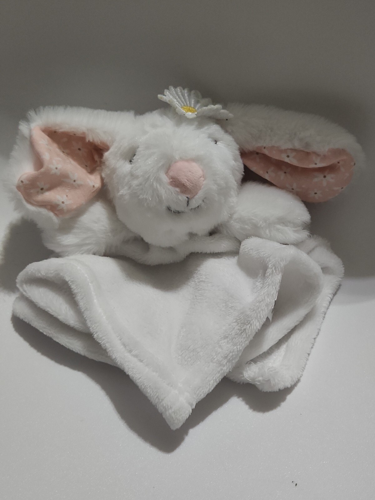 Modern Baby White Bunny Security Blanket Fuzzy Lovey Daisy 12 12