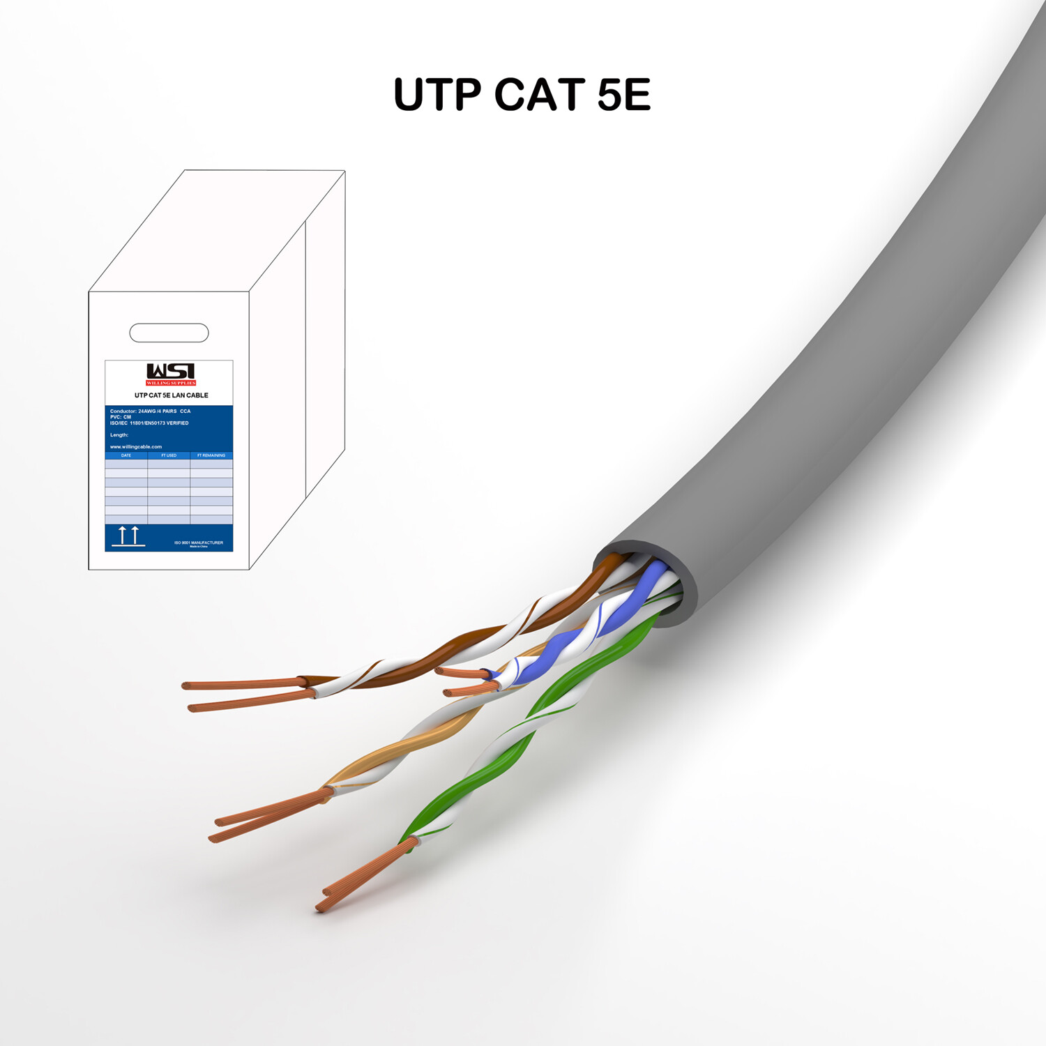 NETWORK LAN CABLE UTP CAT5E CCA 250FT,500FT,1000FT WHITE BLUE GREY CM RATED PVC
