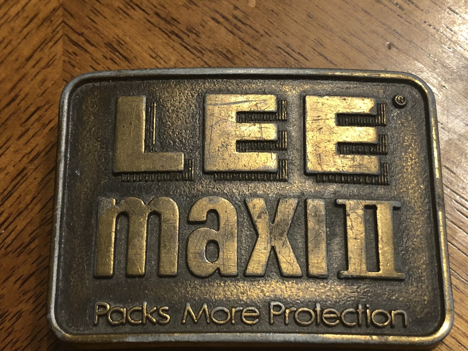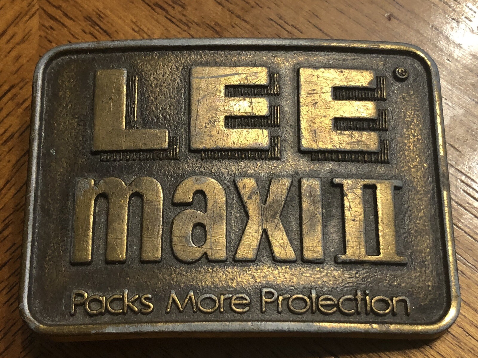 Vintage Lee MaxII Packs More Protection Belt Buckle