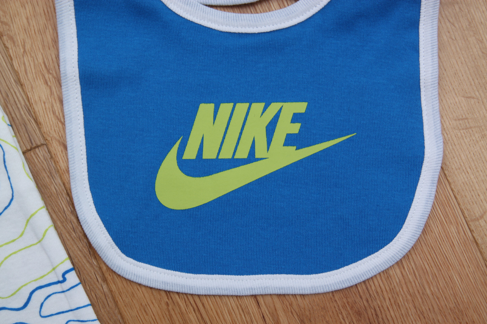 как выглядит Nike Baby Boy 3 Pc Hat, Bib Bodysuit Set Blue, White, Green Purple 6-12M фото