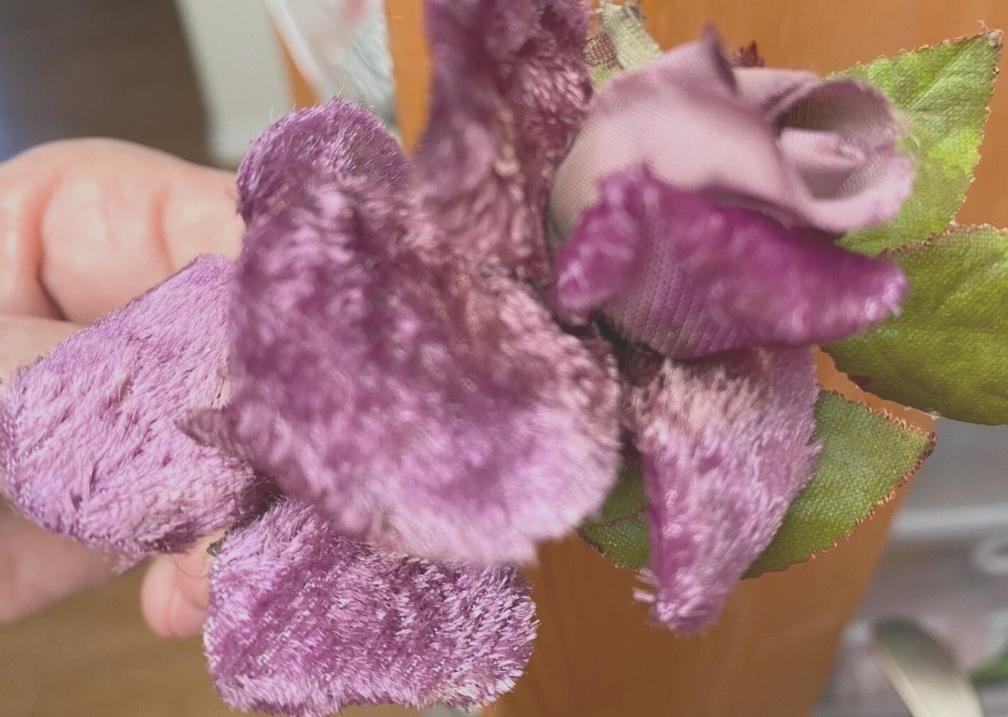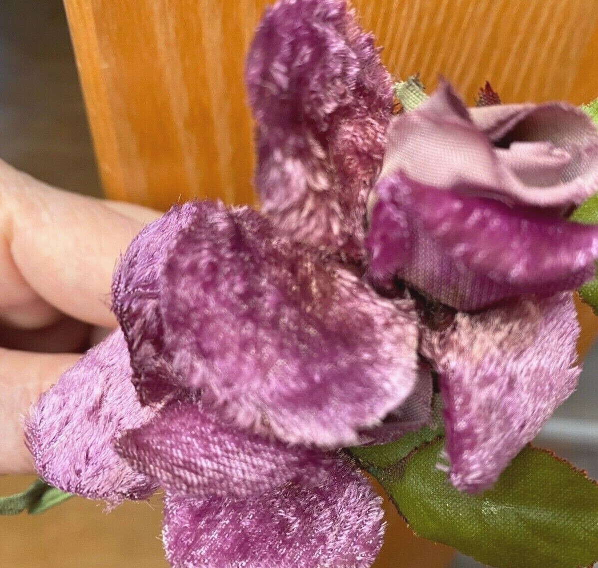 vintage millinery 1940s velvet double roses amethyst 1 spray made in Japan
