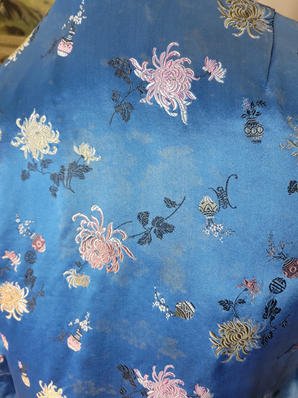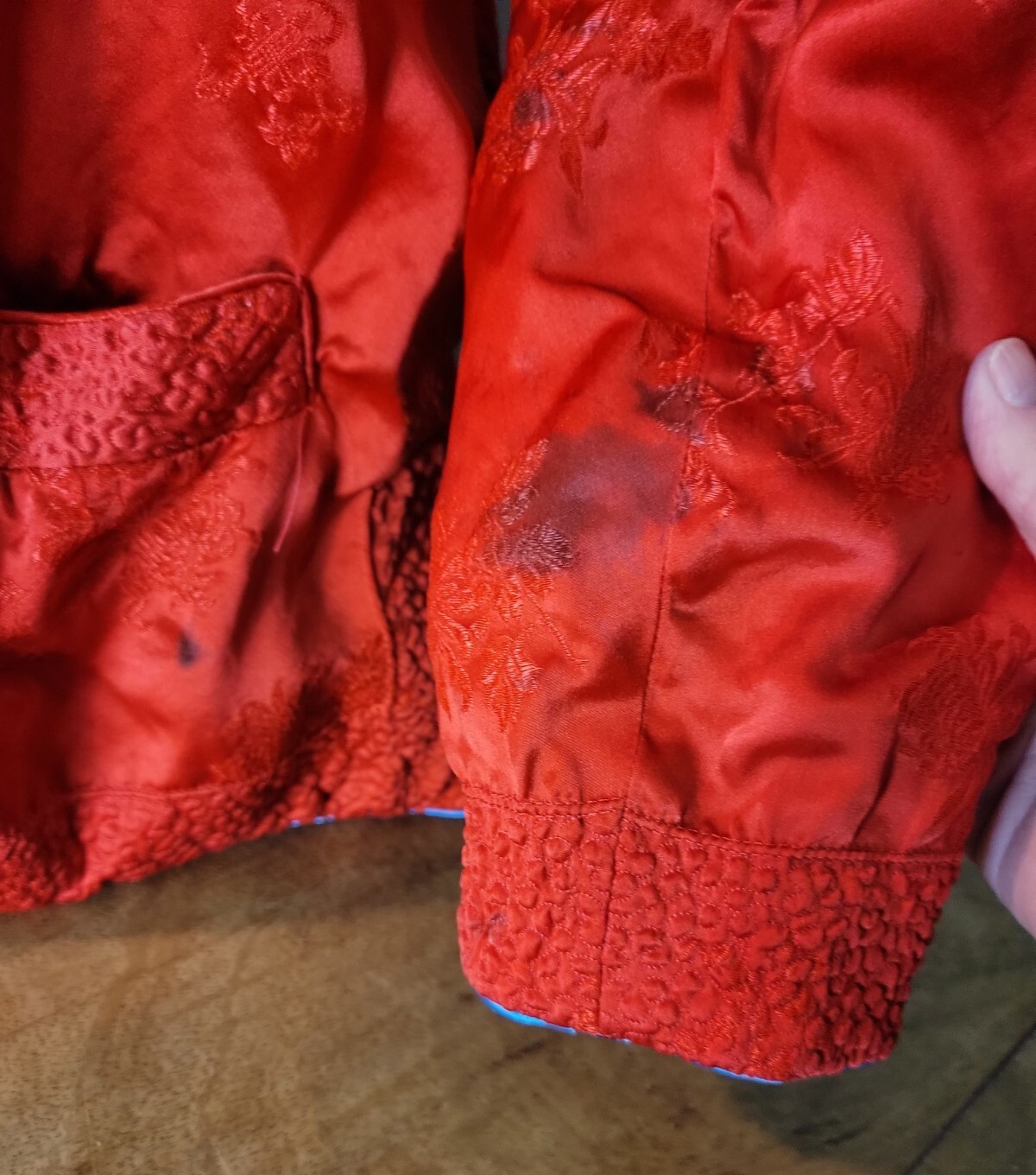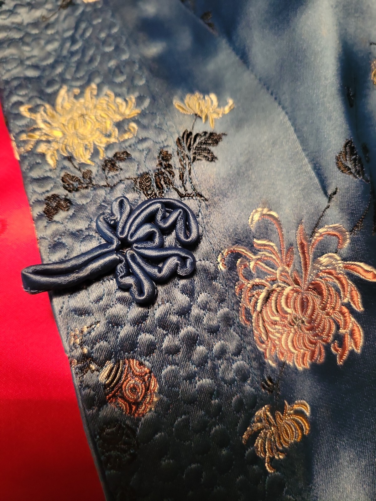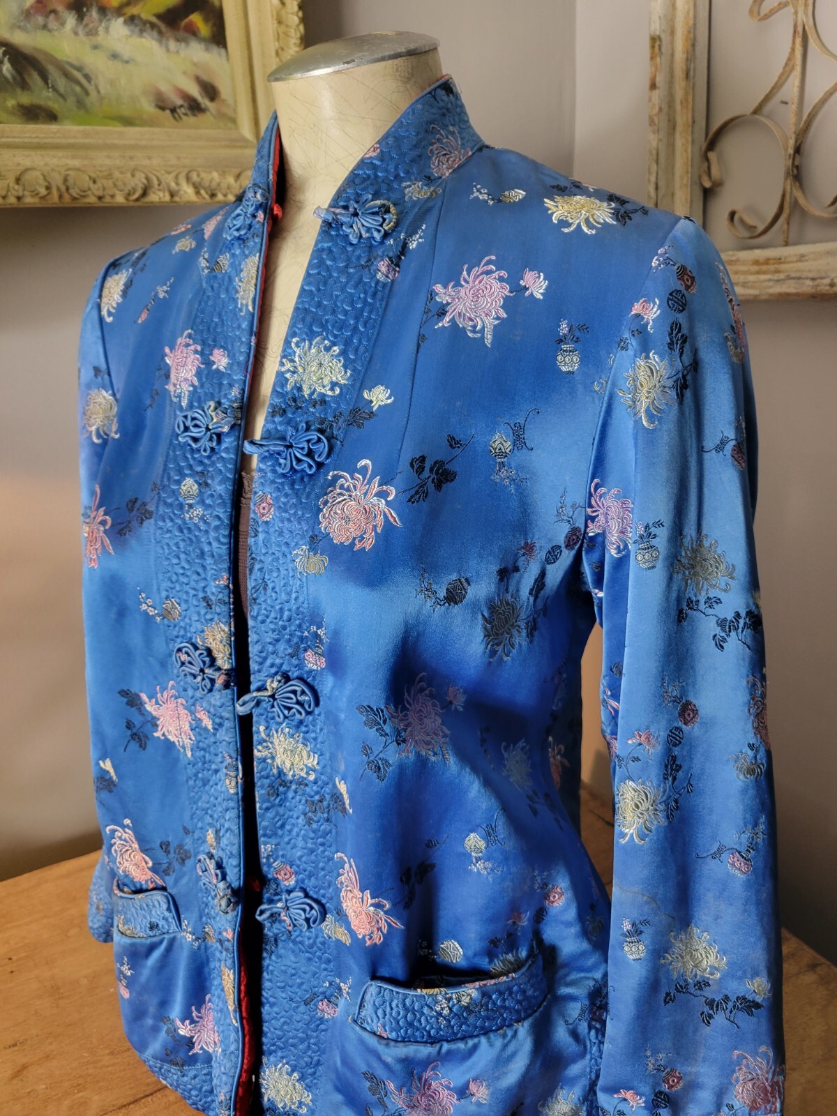 как выглядит Vintage Silk Blue Red Asian Embroidered kimono floral Jacket S M reversible фото