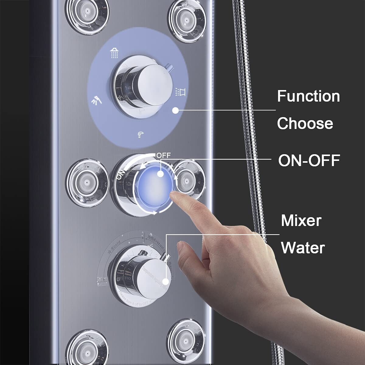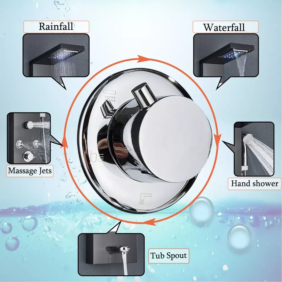 ELLO ALLO Shower Panel Tower System Waterfall Shower Head w/ Massage Body Jets