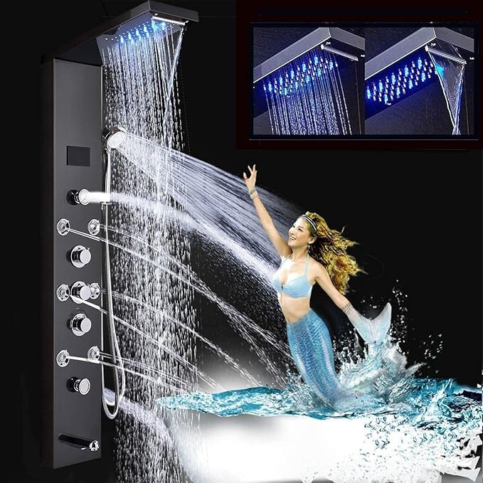 как выглядит ELLO ALLO Shower Panel Tower System Waterfall Shower Head w/ Massage Body Jets фото