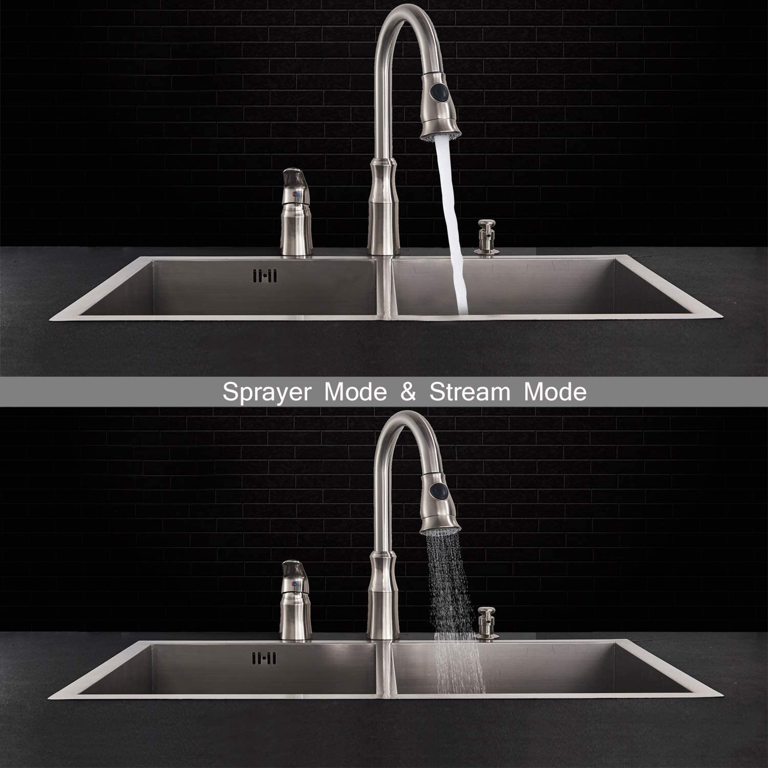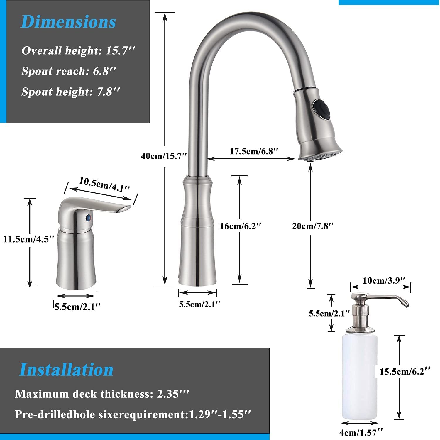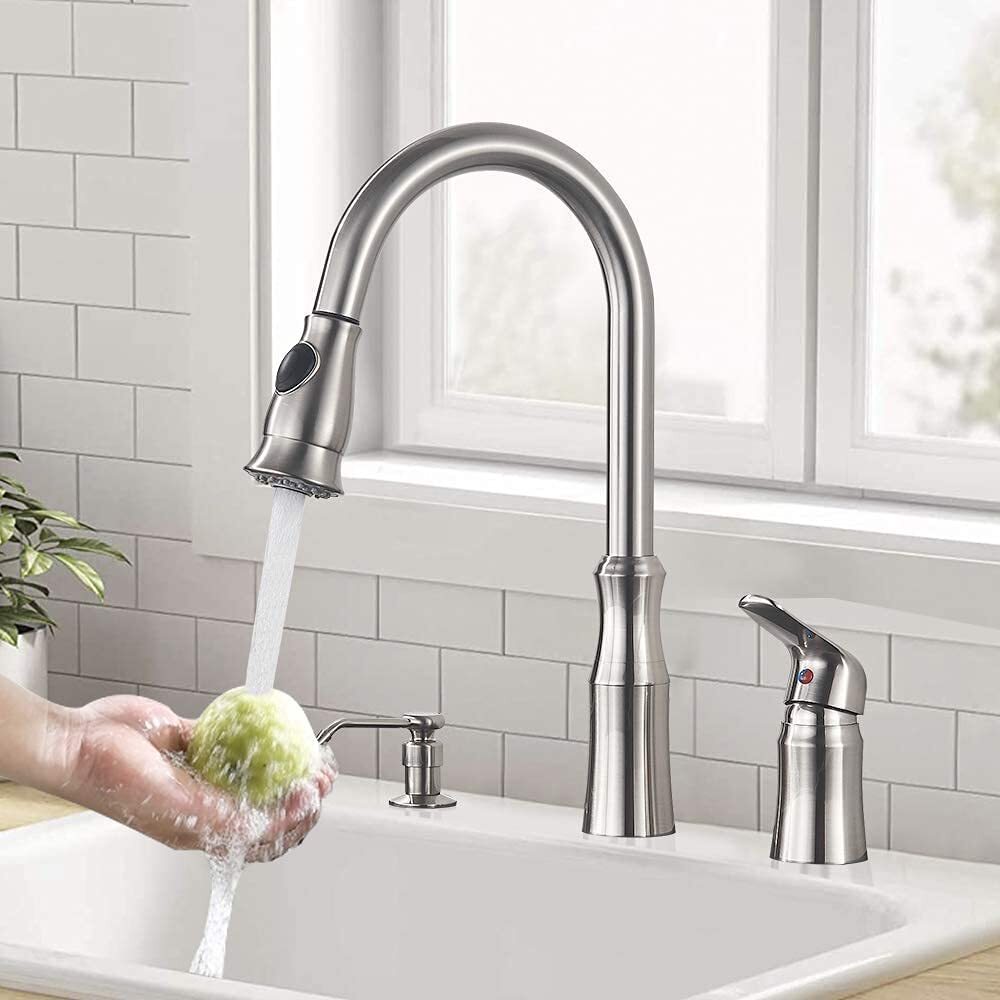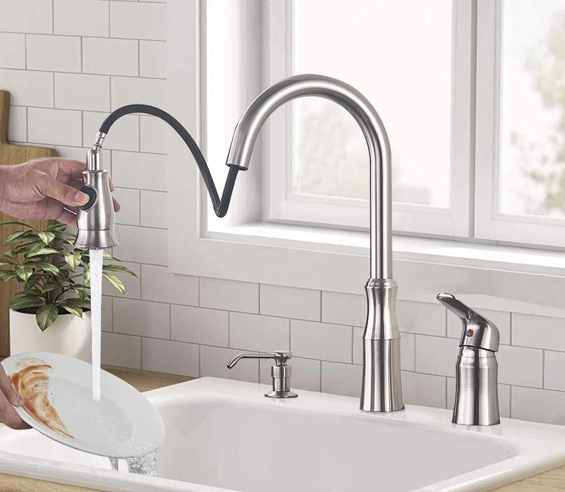 Single Handle High Arc Kitchen Sink Faucet with Pull Down Sprayer Soap Dispenser