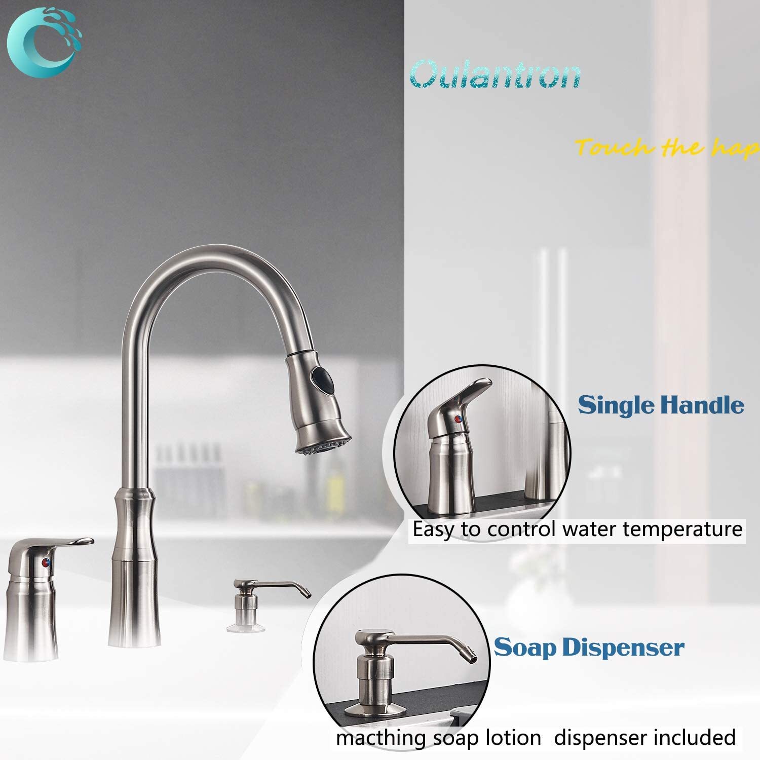 как выглядит Single Handle High Arc Kitchen Sink Faucet with Pull Down Sprayer Soap Dispenser фото