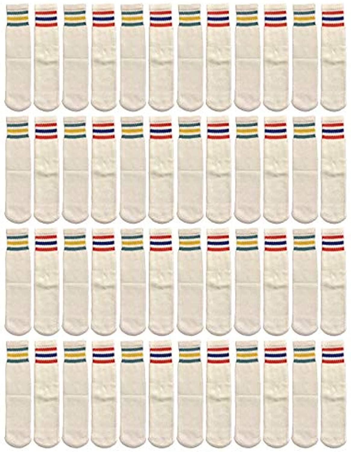 48 Pairs of Kids Cotton Tube Socks White With Stripes Size 4-6 - Boys Crew Sock