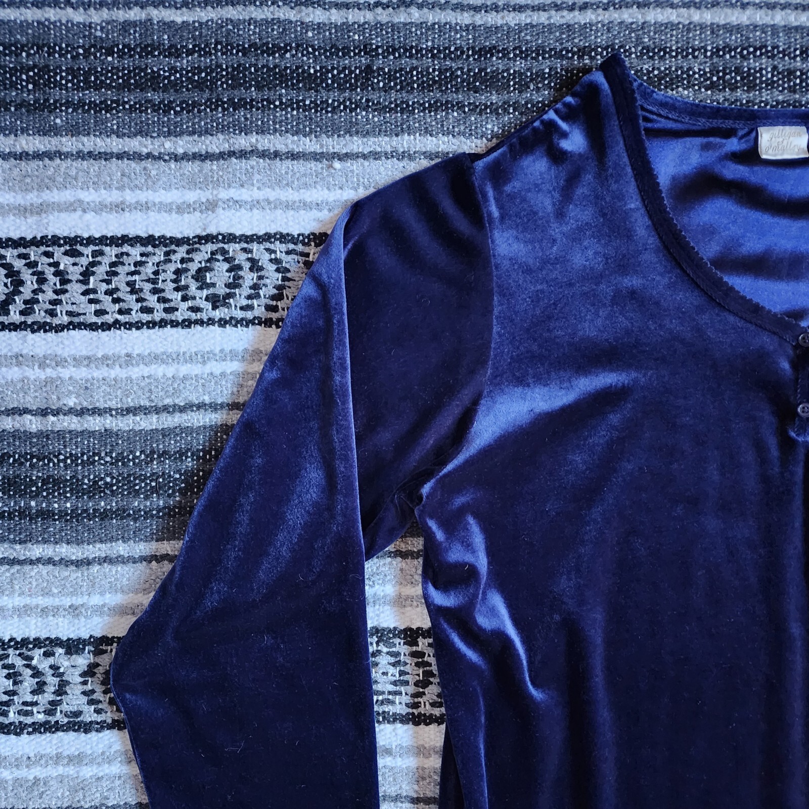 Vtg Gilligan O'Malley Sz XL Below Knee Midi Long Sleeve Velvet Nightgown Blue