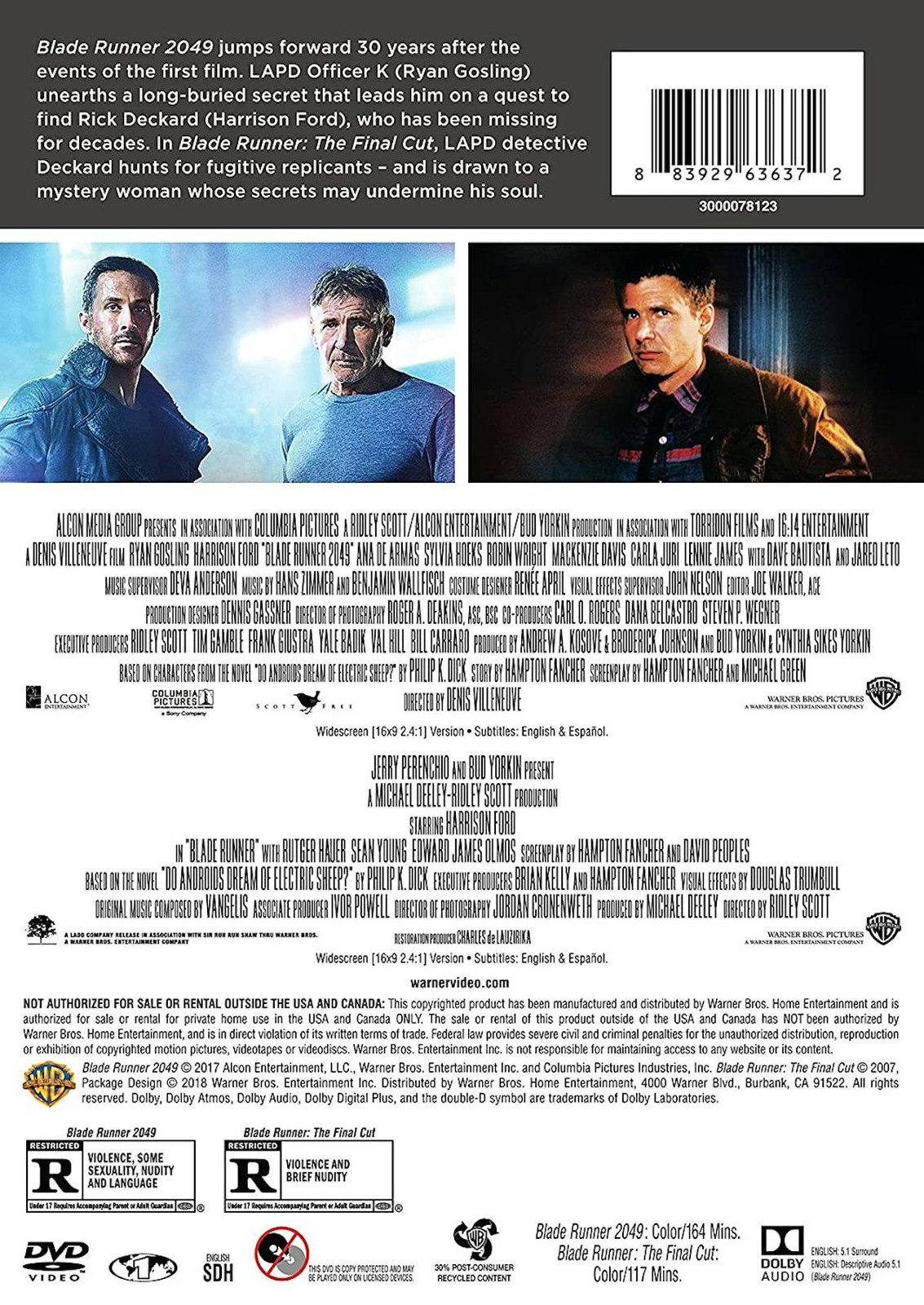 Blade Runner The Final Cut / Blade Runner 2049 DVD Harrison Ford NEW