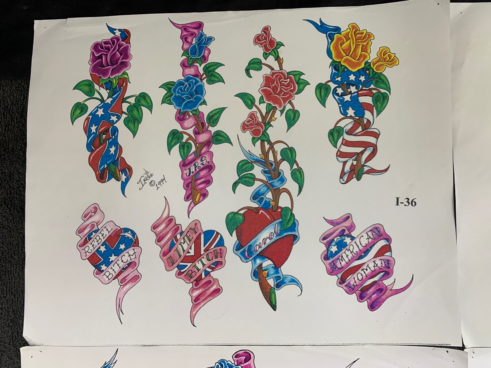 как выглядит VTG Wm INKEE BLANCHARD 1994 Tattoo Flash Sheet Lot Of 4 I-36, I-37, I-41, I-43 фото