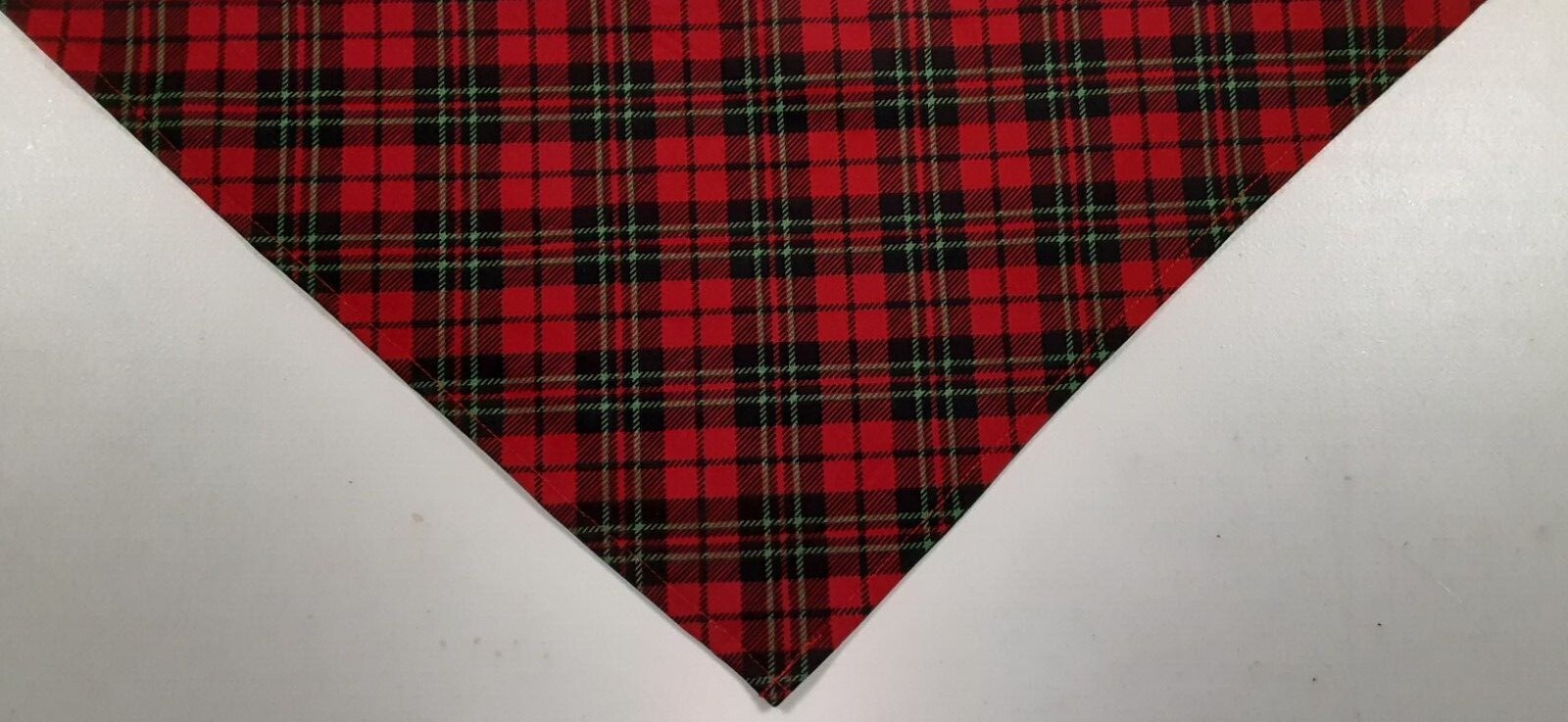 Buster Brown Dog Bandana, Tie On, Red, Green, Christmas, Tarleton, Plaid, S,M
