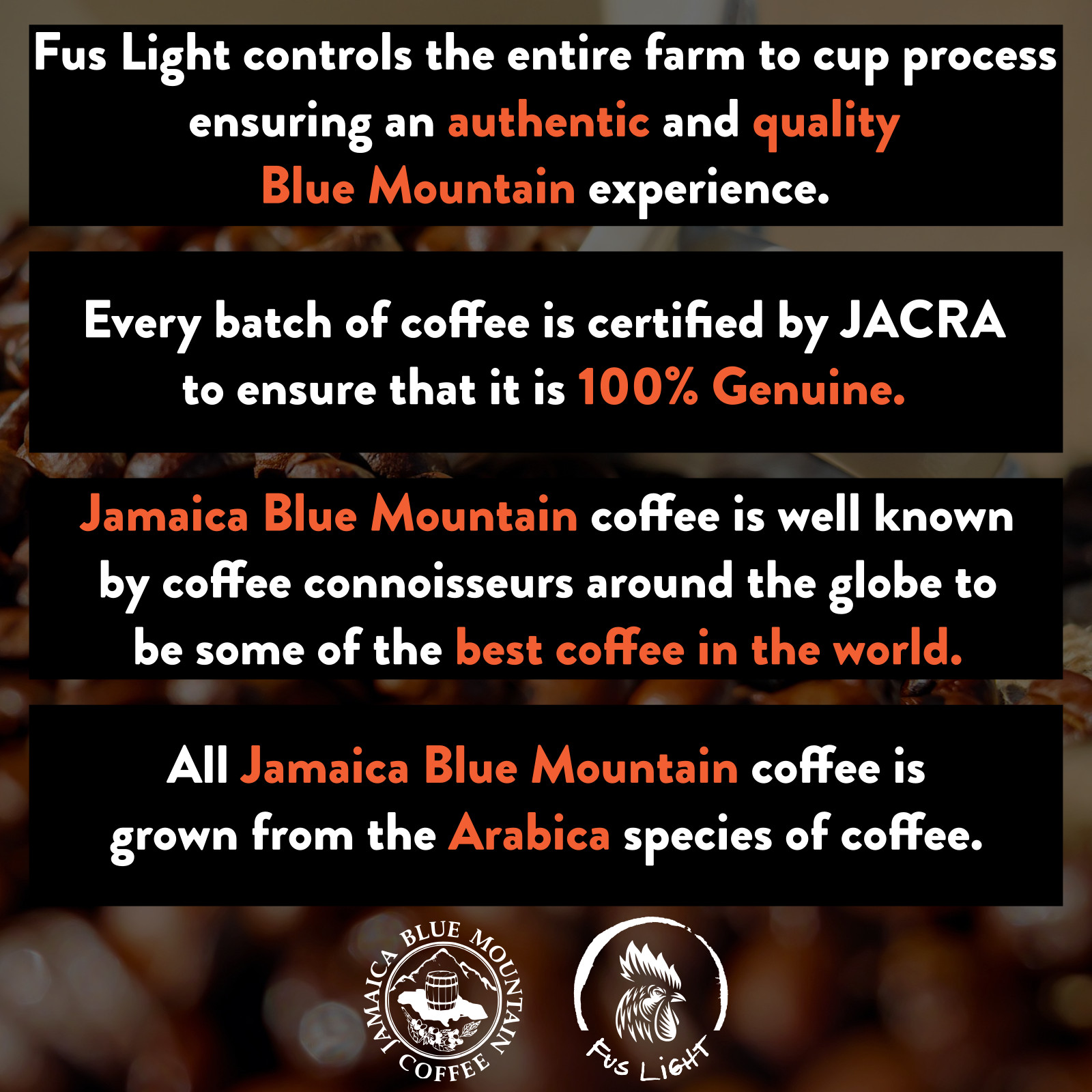 Fus Light 100 Certified Jamaica Blue Mountain Coffee Medium Roast 8 Ounce