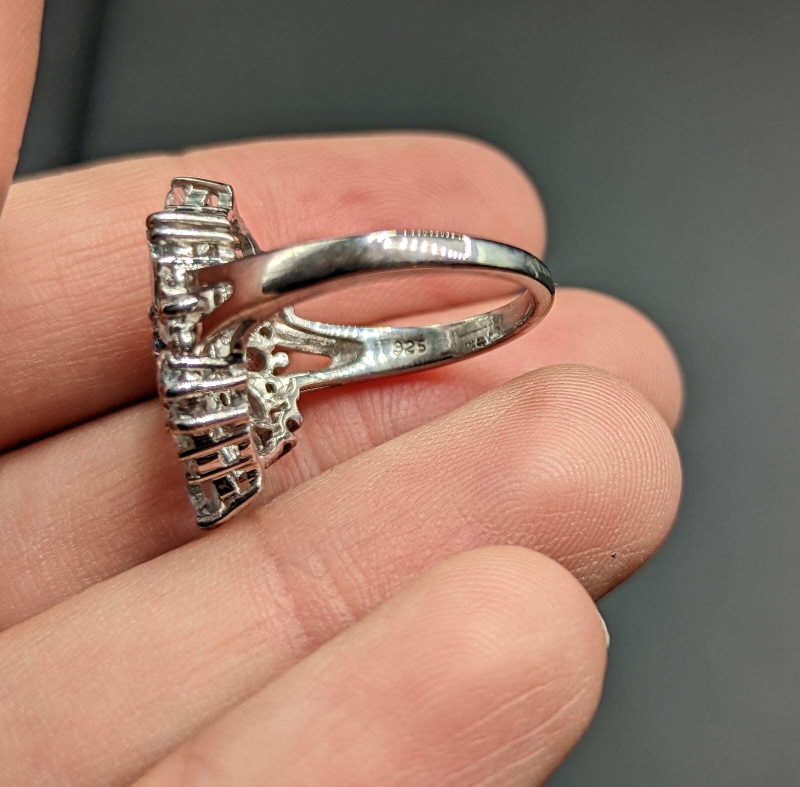 Size 7 Sterling Silver 925 Marquise Blue Aquamarine Topaz Gemstone Cluster Ring