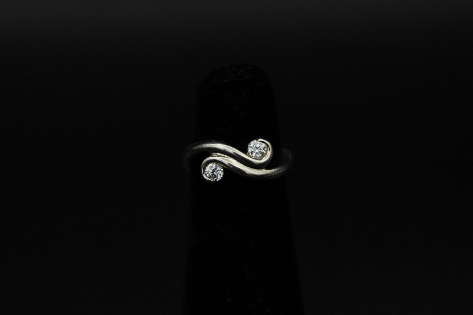Crystal Adorned Vintage 925 Sterling Silver Women's ring size 2.5 adjustable