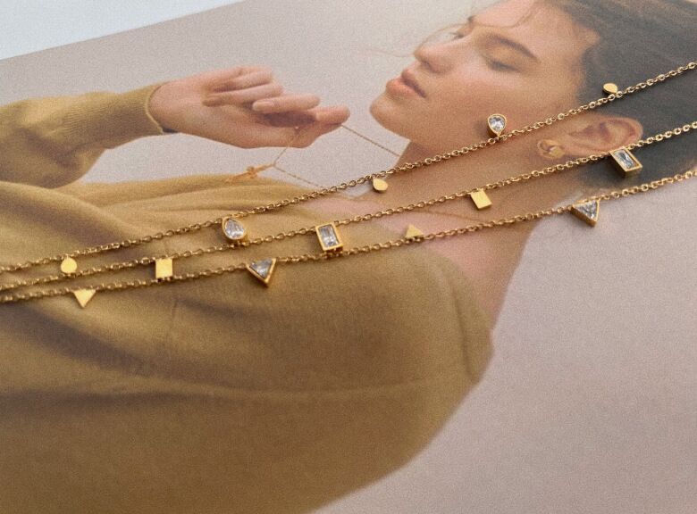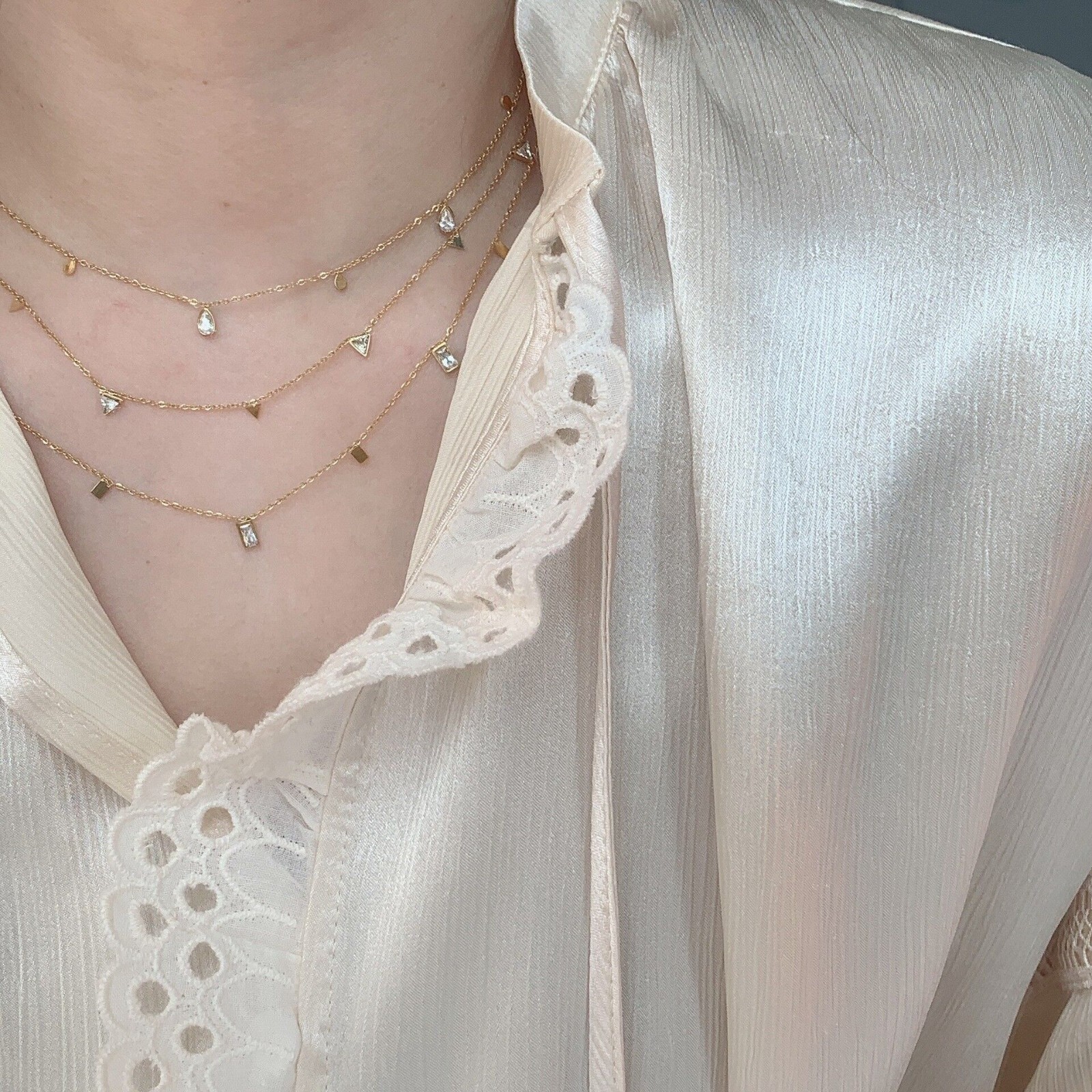 как выглядит Woman 18K Gold Plate Stainless Steel Round Square CZ Cute Charm Chain Necklace фото