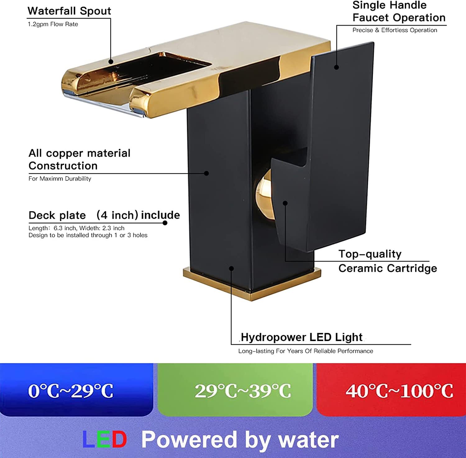 как выглядит LED Waterfall Bathroom Sink Faucet Single Handle Basin Vanity 1 Hole Mixer Tap фото